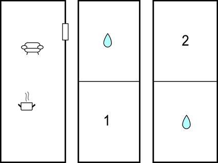 Badezimmer (nr. 1) - WC. Warmes und kaltes Wasser. Dusche