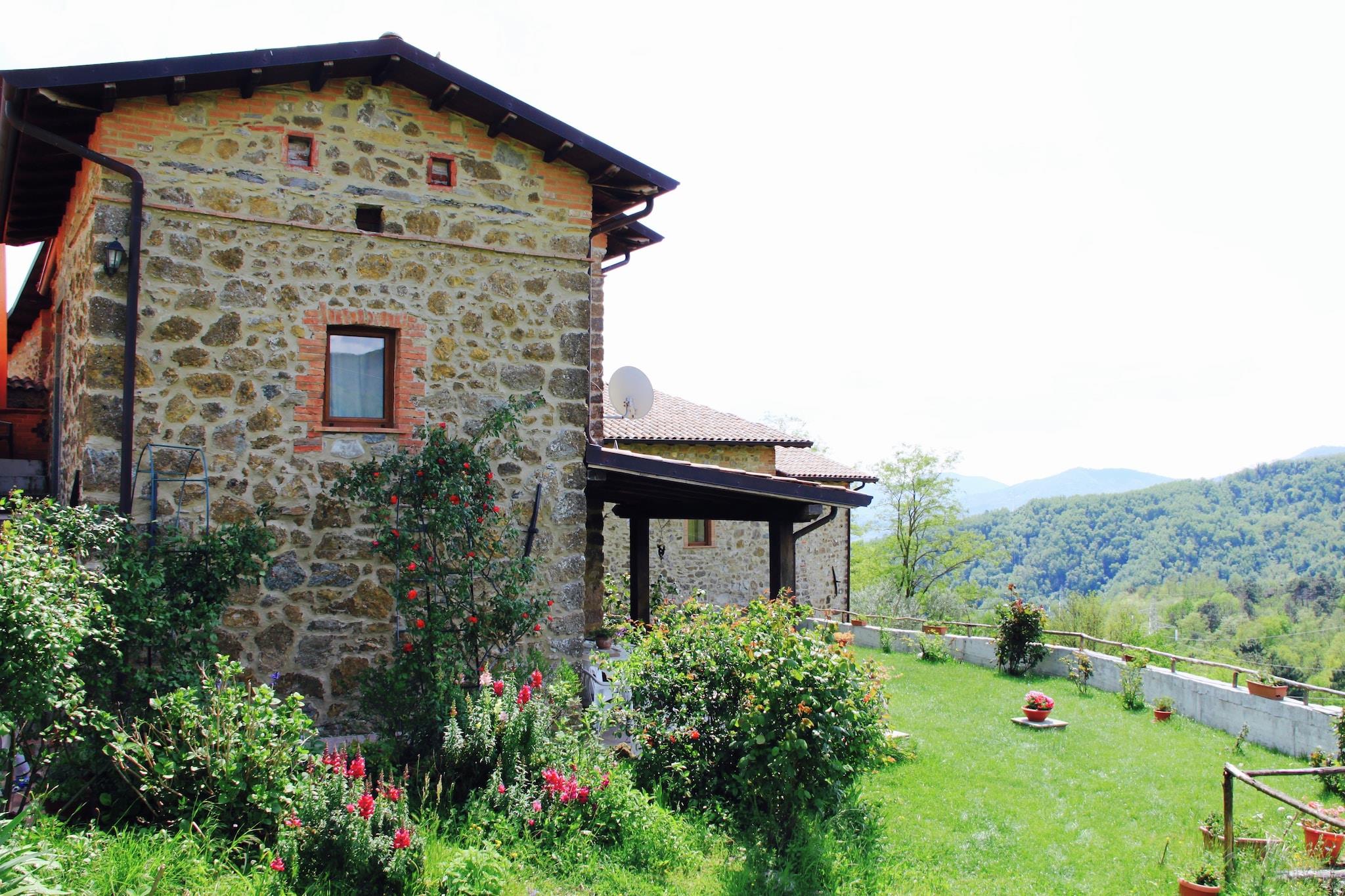 Eingebettet in die malerische Landschaft der Toskana bietet dieses charmante Ferienhaus einen idyllischen Rückzugsort für zwei Personen. Das in Mulazzo gelegene Haus verbindet rustikalen Charme mit modernem Komfort. Umgeben von üppigen Wäldern und sanften Hügeln bietet das Anwesen einen ruhigen Rückzugsort für Reisende, die Entspannung und Ruhe suchen. Die einladenden Innenräume, darunter ein gemütliches Wohnzimmer mit Holzofen, schaffen eine warme und einladende Atmosphäre. Ob Sie die ruhige Atmosphäre auf der privaten Terrasse genießen oder die umliegende Landschaft erkunden – dieses Ferienhaus ist der perfekte Ausgangspunkt für die wunderschöne toskanische Natur. Dieses auf Komfort und Bequemlichkeit ausgelegte Haus verfügt über eine gut ausgestattete Küche mit Cerankochfeld und Backofen, ein charmantes Schlafzimmer und ein stilvolles Badezimmer mit Dusche und Bidet. Gäste können im gemeinschaftlichen Fernsehraum entspannen oder gemütliche Momente im Garten genießen. Outdoor-Fans werden den Naturschwimmteich, den Grillplatz und die Ruhezone lieben, während spielerische Gäste sich am Tischfußball und den nahegelegenen Spielgeräten vergnügen können. Fahrräder können gemietet werden und bieten die perfekte Möglichkeit, die malerische Umgebung zu erkunden. Geschichtsliebhaber können die alten Dörfer und Burgen erkunden, das Menhir-Museum in Pontremoli besuchen oder das Ethnografische Museum in Villafranca entdecken. Für Küstenabenteuer bieten die Cinque Terre, Lerici und Portovenere, die nur eine Autostunde entfernt liegen, atemberaubende Ausflugsziele. Feinschmecker können in den nur 4 km entfernten Restaurants authentische toskanische Küche genießen und lokale Spezialitäten genießen, die das reiche gastronomische Erbe der Region prägen.