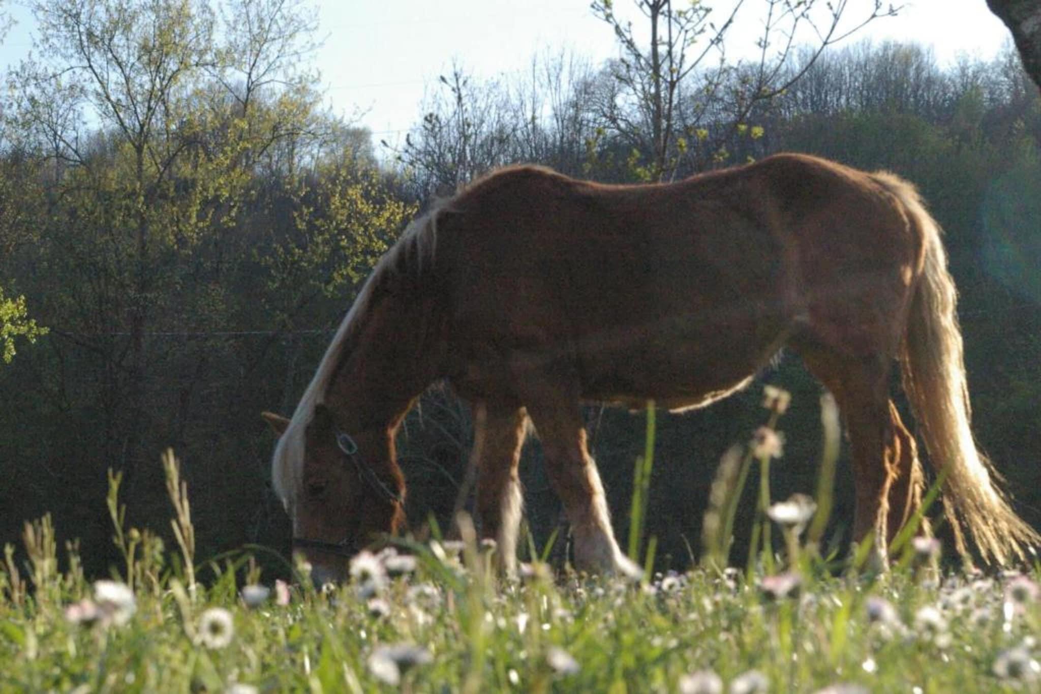Parterre: (Fernsehzimmer(Gemeinschaftliche Nutzung mit anderen Gästen)(TV(digital), Ofen(Holz)), Ruheraum(Gemeinschaftliche Nutzung mit anderen Gästen)(Ofen(Holz), Tischfußball), Wirtschaftsraum(Gemeinschaftliche Nutzung mit dem Eigentümer und anderen Gästen )(Hochstuhl), Garten(Gemeinschaftliche Nutzung mit dem Eigentümer und anderen Gästen ), Gartenmöbel, Grill, Parkplatz, Pool(Gemeinschaftliche Nutzung mit anderen Gästen, Naturschwimmteich, 10 x 6 m., geöffnet von Jan bis einschließlich Jan), Spielgeräte(Gemeinschaftliche Nutzung mit anderen Gästen), Fahrräder verfügbar(gegen Gebühr)) In der 1. Etage: (Wohnzimmer(über Außentreppe)(Doppelschlafcouch, TV, Ofen(Holz)), offene Küche(Kochherd(4 Kochplatten, Ceranfeld), Backofen, Kühl-/Gefrierkombination), Schlafzimmer(Doppelbett, Kinderbett), Badezimmer(Dusche, Waschbecken, Toilette, Bidet)) Patio