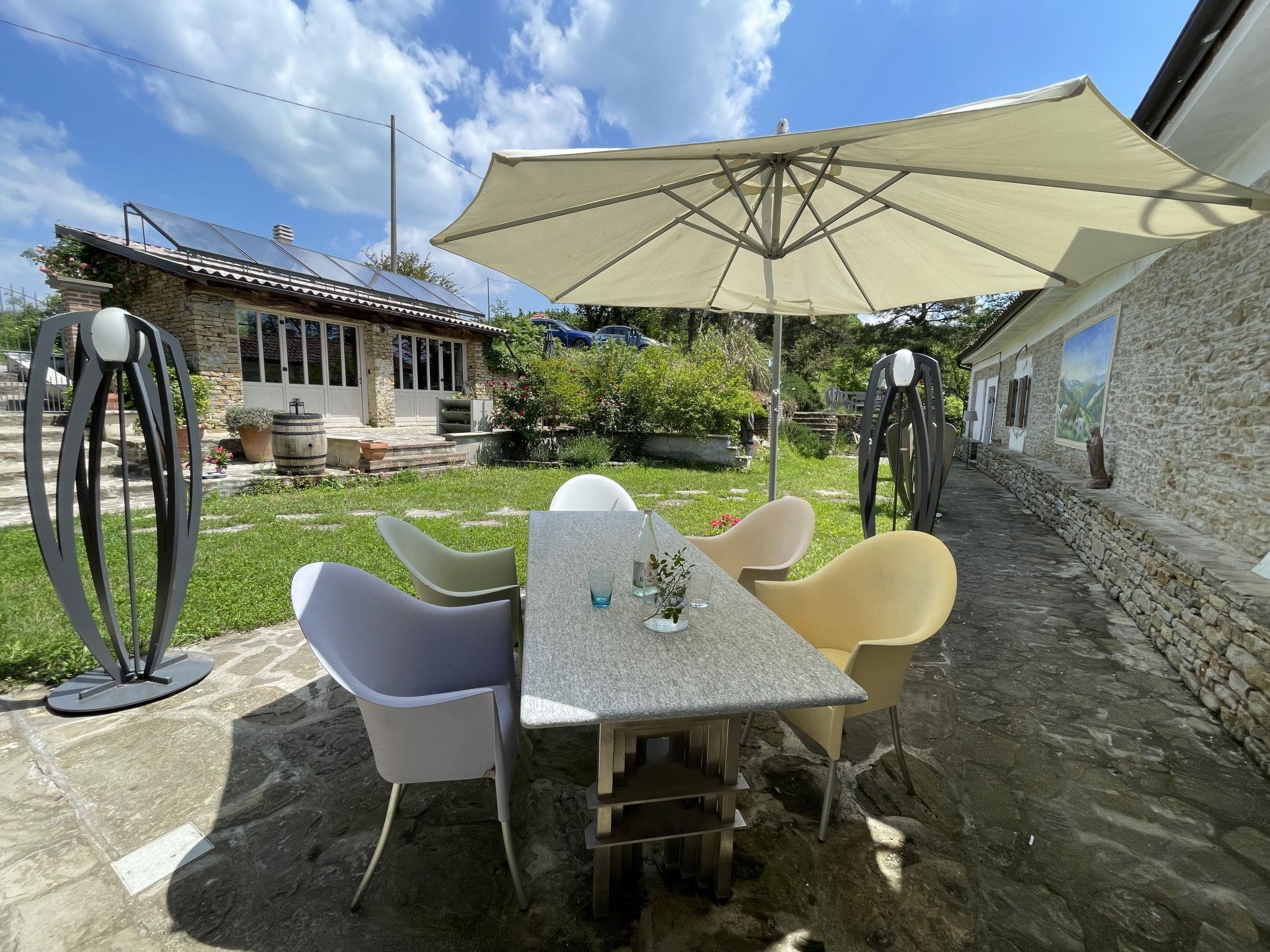 Haus "Casa Vacanza Cascina Lovera", 650 m.ü.M., umgeben von Wiesen, Feldern und Weinbergen. 4 Wohnungen im Ferienhaus. 3 km vom Zentrum von Murazzano, 10 km vom Zentrum von Dogliani, 20 km vom Zentrum von Barolo, alleinstehende Lage am Hang, 56 km vom Meer. Zur Mitbenutzung: Grundstück 15'000 m2, terrassierter Garten (nicht eingezäunt) mit Rasen und Pflanzen, Naturgarten, Schwimmbad (8 x 4 m, 140 cm tief, saisonale Verfügbarkeit: 01.Mai. - 03.Okt.). Aussendusche, Terrasse, Gartenmöbel, begrünter Innenhof Poolpflege durch den Besitzer/Gärtner. Im Hause: Tischfussball. Parkplatz beim Haus auf dem Grundstück. E-Ladestation. Einkaufsgeschäft 3 km, Supermarkt 10 km, Bushaltestelle 200 m, Bahnstation "Bra" 34 km. Bitte beachten: Der Besitzer wohnt auf dem gleichen Grundstück.