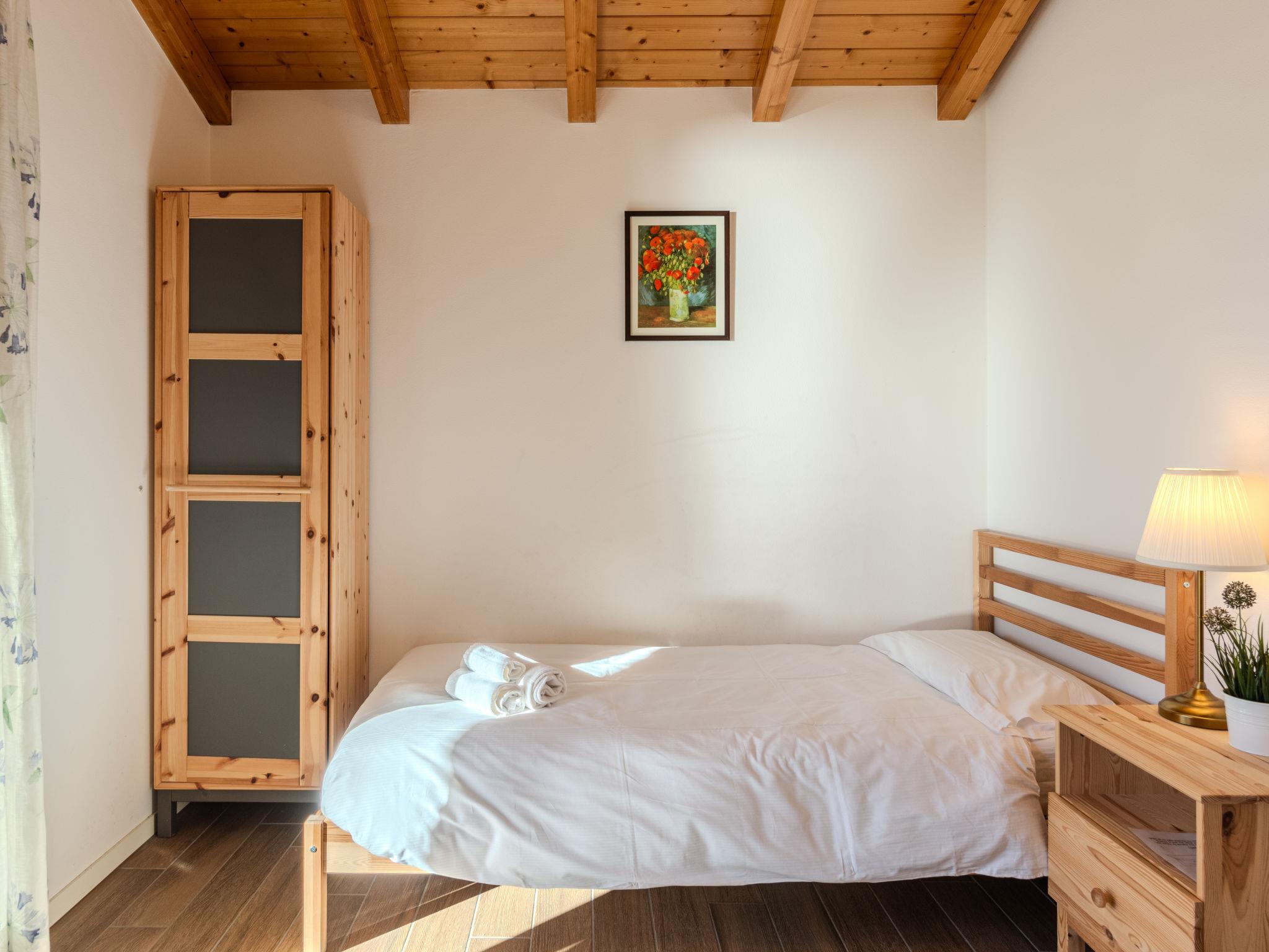 5-Zimmer-Doppelhaushälfte 125 m2 auf 3 Stockwerken. Geräumig und hell, komfortabel und schön eingerichtet: Wohnzimmer mit Sat-TV (Flachbildschirm). Küche (4 Kochplatten, Backofen, Geschirrspüler, Mikrowelle, Tiefkühler, elektrische Kaffeemaschine) mit Esstisch. Ausgang zum Gartensitzplatz. Sep. WC. Unteres Geschoss: grosses Wohn-/Schlafzimmer mit 1 Bett und Dusche/Bidet/WC. Obergeschoss: 1 Doppelzimmer mit Ventilator. Ausgang zum Balkon. 1 Zimmer mit 2 Betten und Ventilator. Ausgang zum Balkon. Dusche/Bidet/WC. G-Heizung. Heizung nur verfügbar von 01.10. bis 30.04. Natursteinboden. 2 kleine Balkone, Gartensitzplatz 6 m2, überdacht, Garten 200 m2. Terrassenmöbel, Balkonmöbel, Gartengrill, Liegestühle (2). Eingeschränkte Sicht auf den See. Zur Verfügung: Waschmaschine, Haartrockner. Internet (Wireless LAN, gratis). Garage. Bitte beachten: eigener Eingang. IT013160C2L68886ME
