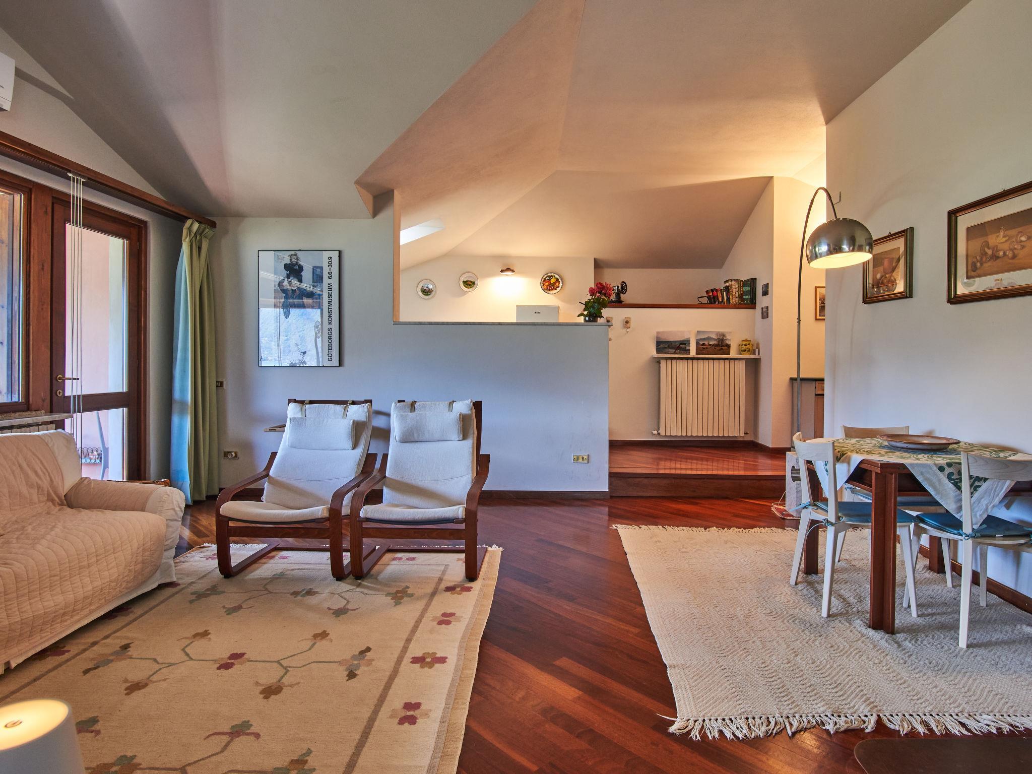 3-Zimmer-Wohnung 85 m2, im Dachgeschoss, Südlage. Teilweise abgeschrägt, schön eingerichtet: Wohn-/Schlafzimmer mit Panoramafenster mit 1 Bett, Esstisch und Radio. Ausgang zum Balkon. 2 Doppelzimmer. Kochnische (4 Kochplatten, Backofen, Geschirrspüler, Mikrowelle, elektrische Kaffeemaschine). Dusche/WC. G-Heizung, Klimaanlage (extra). Parkettboden. Balkon. Balkonmöbel. Herrliche Panoramasicht auf den See und die Berge. Zur Verfügung: Waschmaschine. Internet (Wireless LAN, gratis). Bitte beachten: Nichtraucher-Unterkunft. IT013160C27R2NG2B7