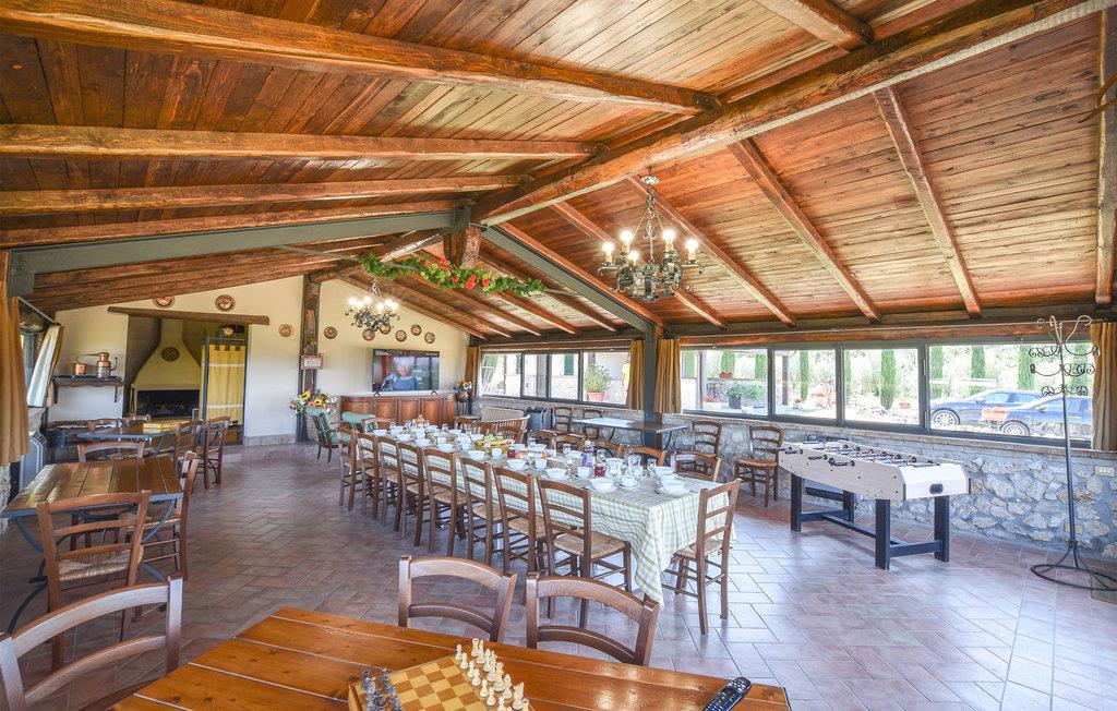 Dieses wunderschöne Ferienhaus mit Swimmingpool, aufgeteilt in vier Apartments mit separaten Eingängen, liegt wenige Kilometer von der antiken römischen Stadt Narni (8 km) entfernt, in einer Landschaft von besonderer Schönheit und in einem Kontext von Ruhe und Privatsphäre. Speisen können Sie im Freien und dabei die große Veranda neben dem Grillbereich und dem Backsteinofen nutzen, oder im großen Raum mit Wohnecke mit SMART-TV und Essbereich neben der Küche, die mit professionellen Geräten ausgestattet ist, ideal für die Zubereitung von kulinarischen Spezialitäten auch für große Gruppen. Der Pool und der Park rund um das Haus sind der Pluspunkt dieses faszinierenden Hauses. Dank seiner Dimensionen ist dieses Haus der ideale Ort, um z.B. einen Jahrestag in der Familie zu feiern oder einfach nur einen Urlaub in totaler Entspannung zu genießen. Zu Ihrer Verfügung ein Fußballplatz, Tischtennis, eine wunderbar gepflegte Rasenfläche rund um das Haus und unbegrenztes Wi-Fi im Gemeinschaftsraum. Auf Anfrage können auf den Doppelsofas in den Wohnzimmern zusätzlich 8 Betten zur Verfügung gestellt werdenIn unmittelbarer Nähe des Hauses gibt es Wege für ruhige Spaziergänge oder Mountainbike-Touren. Im Umkreis von 5 km finden Sie Tennisplätze und einen Reitstall. Nur 17 km entfernt erwartet Sie der berühmte Marmore-Wasserfall. Ausflugsziele: Rom (70 km) ist in 40 Minuten mit dem Zug zu erreichen. Des weiteren einen Besuch wert: Spoleto 40 km, Todi 50 km, der Lago di Bolsena 65 km, Assisi 70 km und Perugia 90 km. Pool- und Gartenpflege durch den Hausmeister, Tage und Uhrzeiten mit den Gästen bei Ankunft zu vereinbaren. Nicht asphaltierte Zufahrtsstraße (1 km).