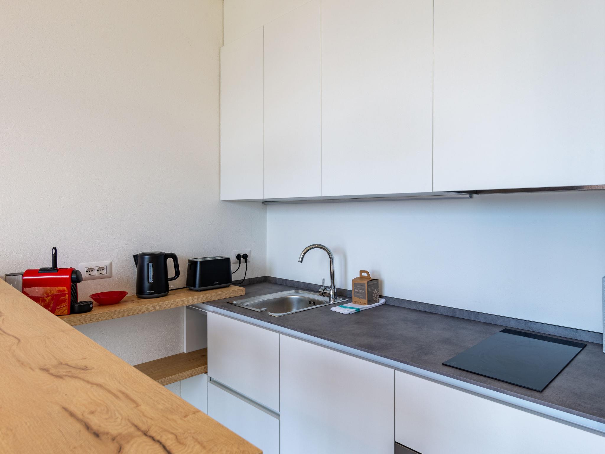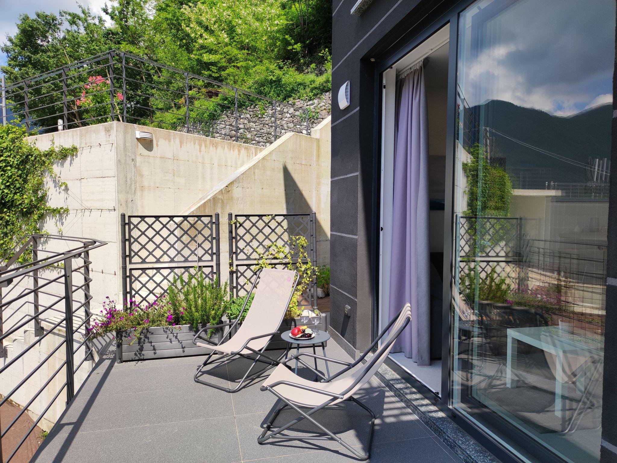 2-Zimmer-Wohnung 50 m2, im Erdgeschoss. Hell, komfortabel und modern eingerichtet: Wohn-/Schlafzimmer mit 1 Diwanbett (120 cm, Länge 190 cm), Bar und Sat-TV (Flachbildschirm). Ausgang zur Terrasse. 1 Zimmer mit 1 Doppelbett (180 cm, Länge 200 cm). Ausgang zur Terrasse. Kleine, offene Küche (Backofen, Geschirrspüler, 2 Induktionskochplatten, Toaster, Wasserkocher, Mikrowelle, Tiefkühler, elektrische Kaffeemaschine). Dusche/Bidet/WC. Klimaanlage, Fussbodenheizung. Heizung nur verfügbar von 15.10. bis 15.04, Solarstrom. Natursteinboden. Grosse Terrasse 18 m2 teilweise überdacht. Terrassenmöbel, Liegestühle (2). Herrliche Panoramasicht auf den See, die Berge und die Ortschaft. Zur Verfügung: Waschmaschine, Bügeleisen, Haartrockner. Internet (WLAN, gratis). Parkplatz in 100 m. Bitte beachten: Nichtraucher-Unterkunft. Eigener Eingang. IT013161C25FEAMGP4