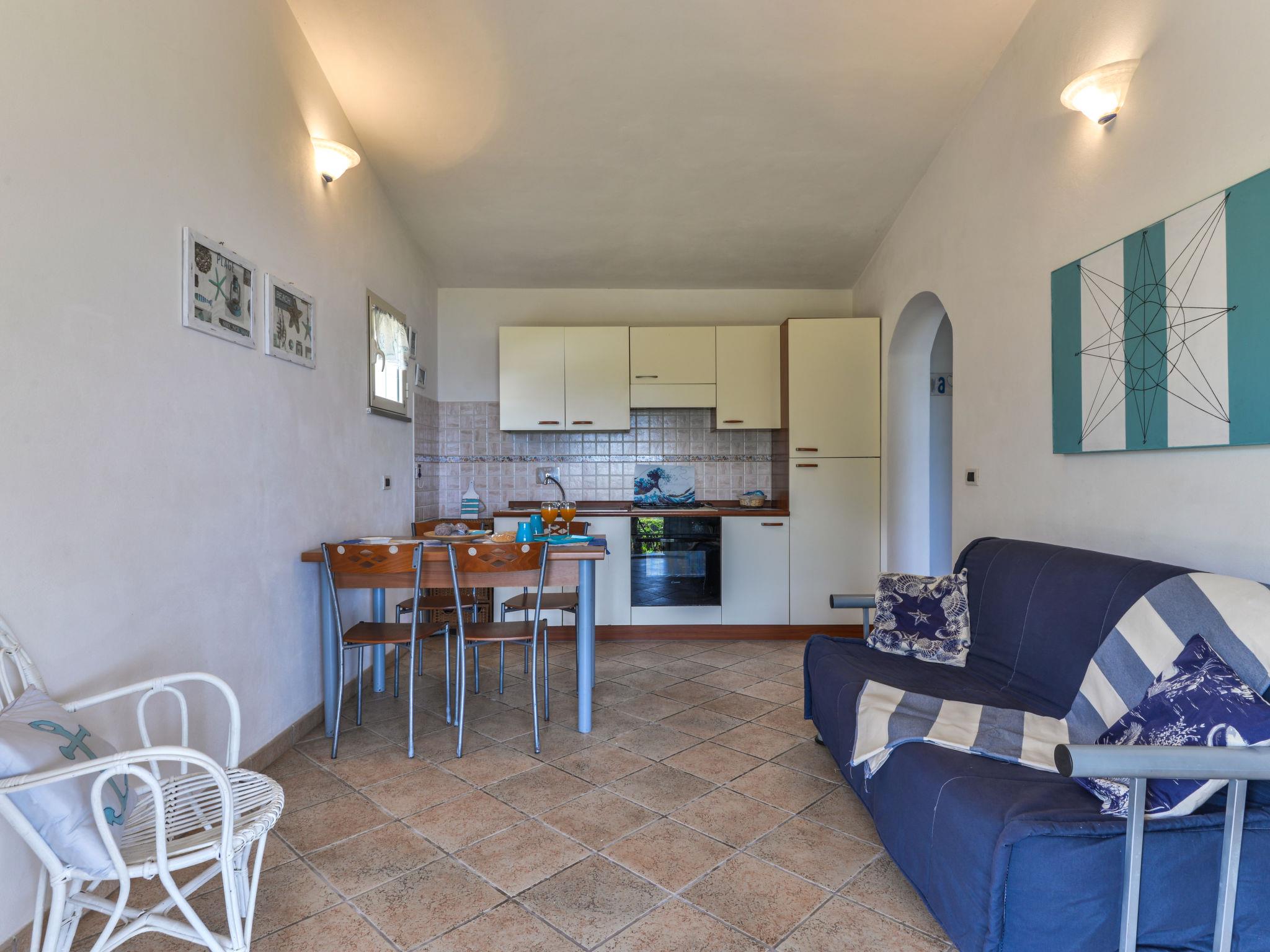 2-Zimmer-Doppelhaushälfte 30 m2, im Erdgeschoss. Zweckmässig und schön eingerichtet: Wohn-/Schlafzimmer mit 1 Doppeldiwanbett und Esstisch. Ausgang zur Terrasse. 1 Zimmer mit 1 franz. Bett (160 cm). Ausgang zur Terrasse. Kochnische (Backofen, 4 Flammen, Tiefkühler). Dusche/Bidet/WC. Keine Heizmöglichkeit. Terrasse 18 m2, überdacht. Terrassenmöbel. Schöne Sicht auf den Wald und das Meer. Zur Verfügung: Kinderhochstuhl, Babybett bis 2 Jahre. Internet (WLAN, gratis). Parkplatz beim Haus. Bitte beachten: Nichtraucher-Unterkunft. Maximal 1 Haustier/Hund erlaubt. Eigener Eingang. IT049021C28R4ZJOC4
