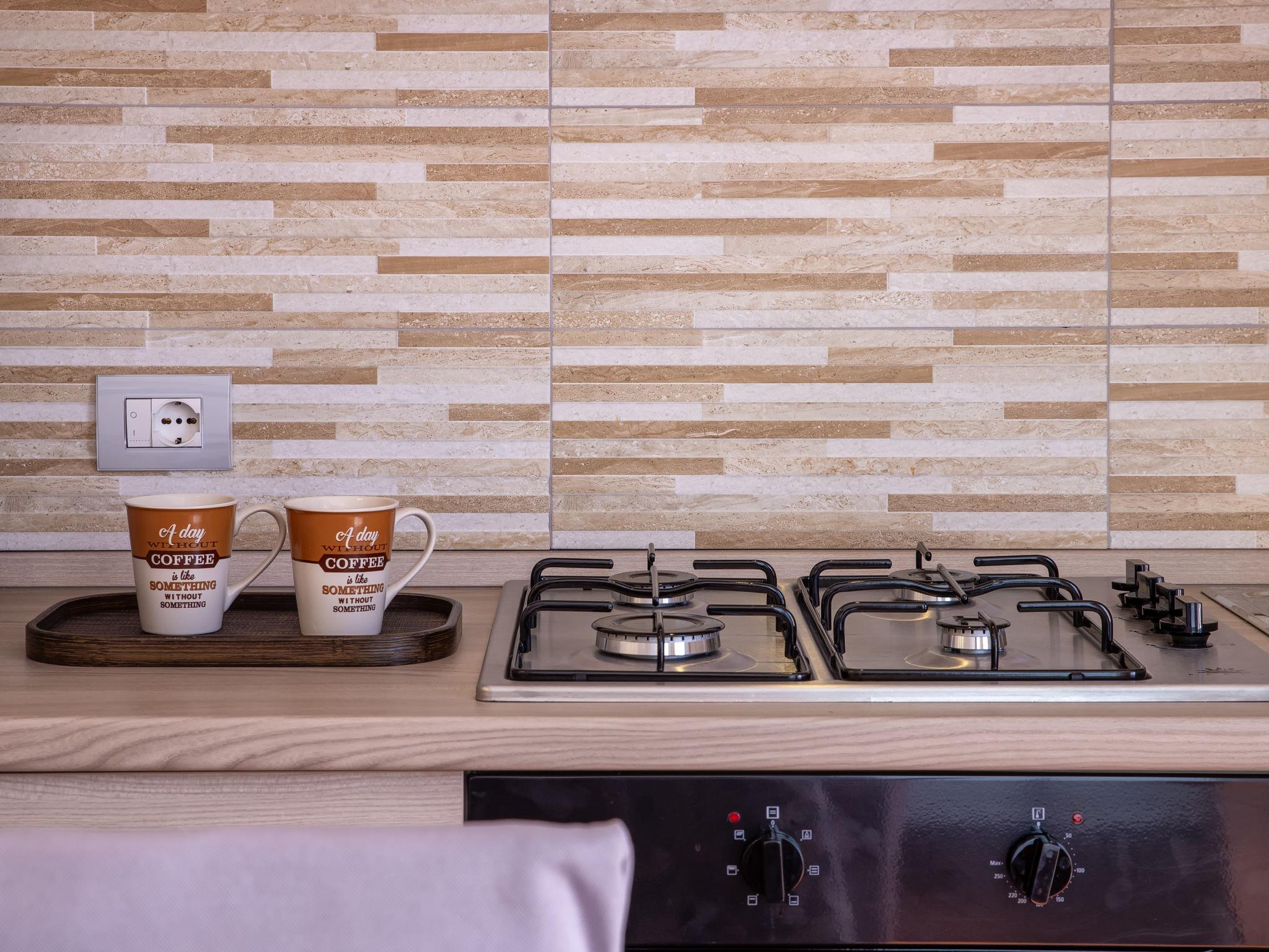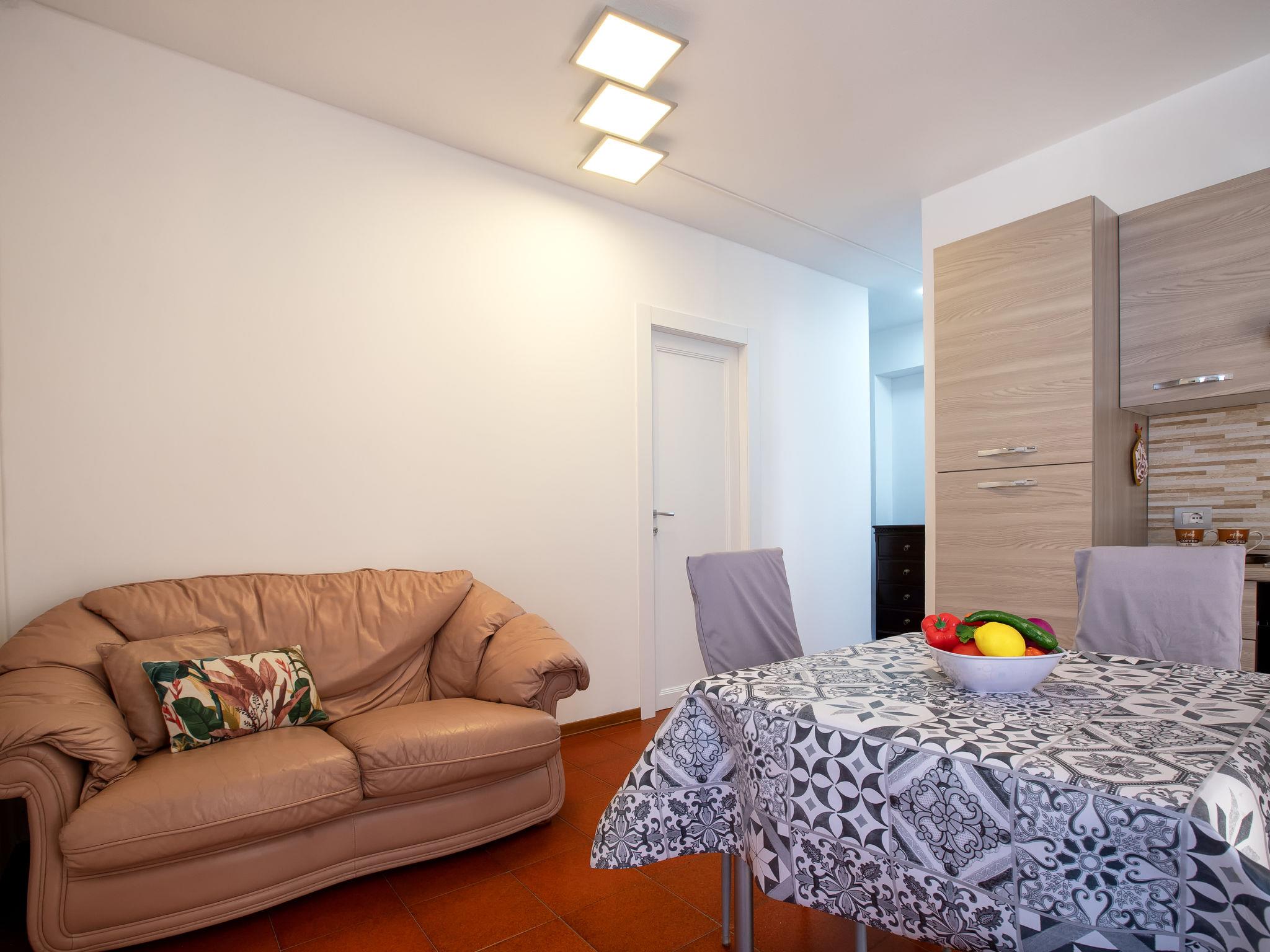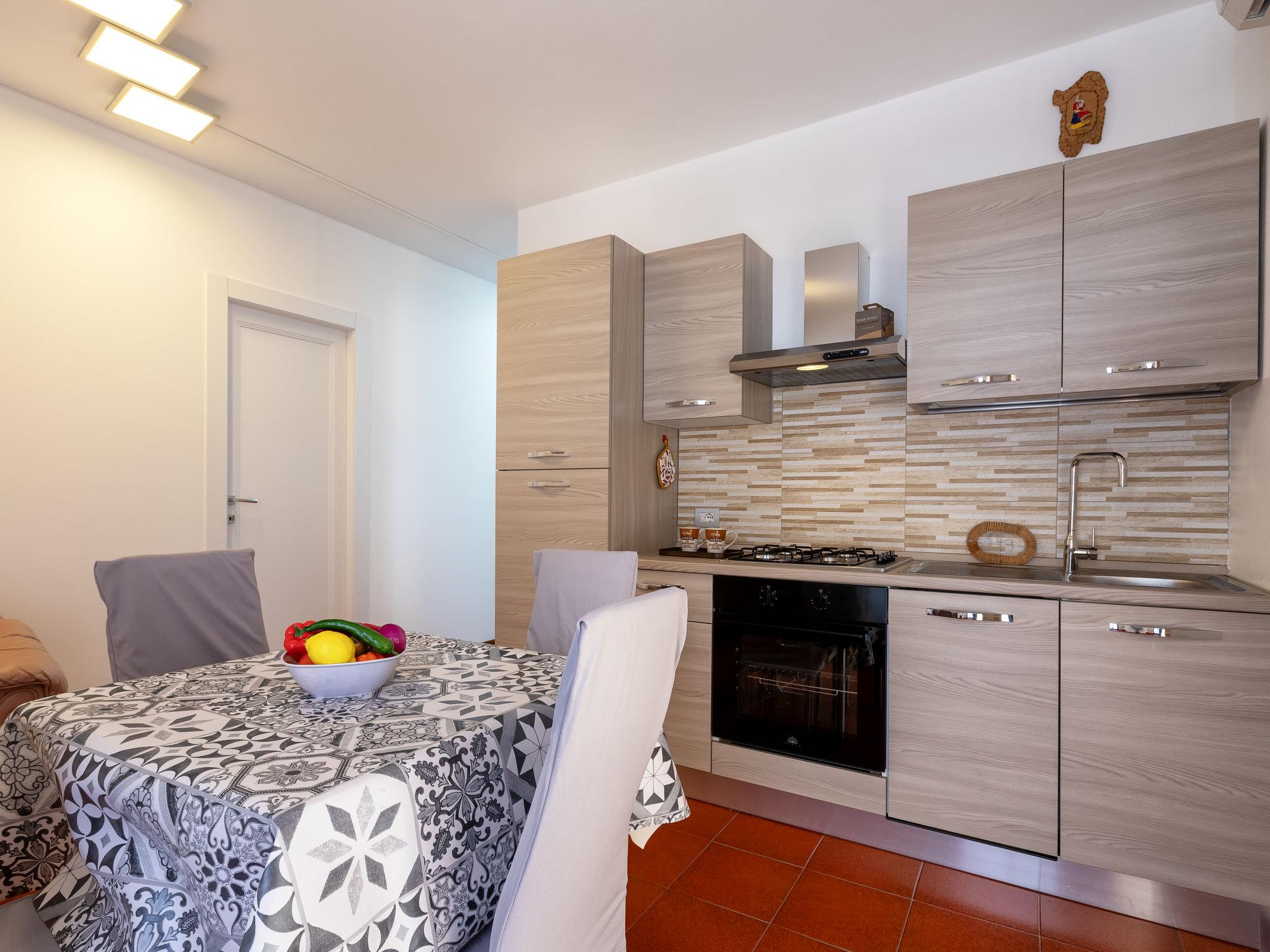 "Luna", 2-Zimmer-Wohnung im 1. Stock. Hell, vollständig renoviert im Jahre 2025, einfach und zweckmässig eingerichtet: Wohn-/Esszimmer mit Esstisch und TV. Ausgang zur Terrasse. 1 Doppelzimmer, Fenster zum Hof. Kochnische (4 Kochplatten, Backofen, Geschirrspüler, Toaster, Wasserkocher, Tiefkühler). Dusche/Bidet/WC. Klimaanlage, Warmluftheizung, Boiler (49 Liter). Grosse Terrasse. Terrassenmöbel. Zur Verfügung: Waschmaschine, Bügeleisen, Haartrockner. Internet (WLAN, gratis). Bitte beachten: Wohnung auf Hofseite. Nichtraucher-Haus. Maximal 1 Haustier/Hund erlaubt. Rauchmelder, Feuerlöscher. IT090047C2000T8323