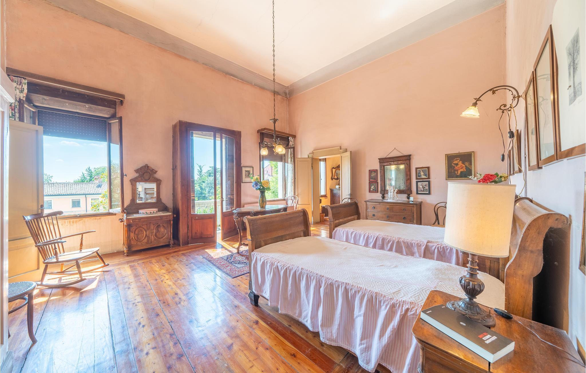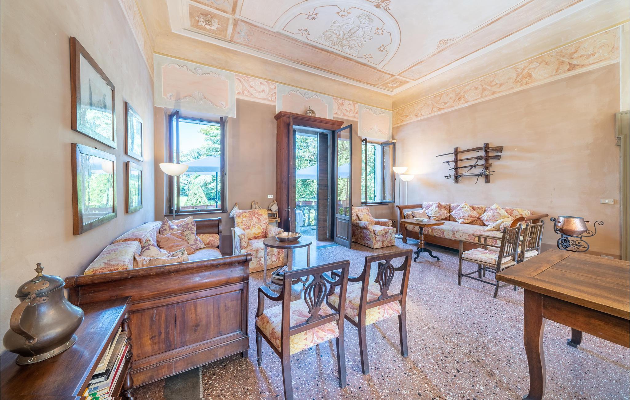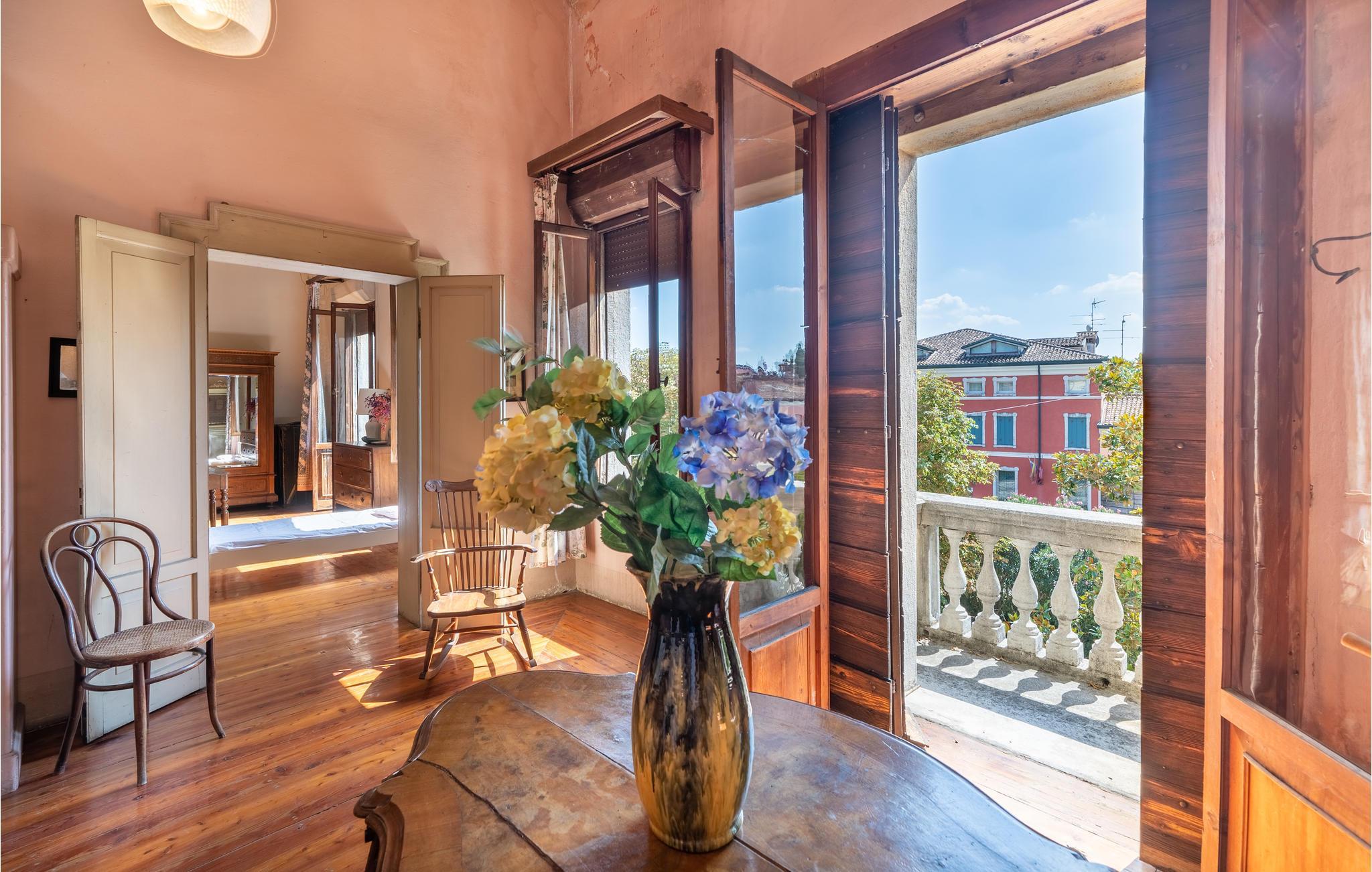 Diese venezianische Villa begrüßt Sie im Ortskern von Oppeano und lädt Sie zu einer unvergesslichen Auszeit in ihre großzügigen, mit originalen antiken Möbeln bestückten Räumlichkeiten ein. Tauchen Sie in vergangene Zeiten ein, während Sie in prachtvollen Zimmern unter hohen Decken speisen und anregende Gespräche bei einem Glas Wein genießen. Zaubern Sie in geselliger Runde leckere Pastagerichte, versammeln Sie sich zu heiteren Spieleabenden oder streamen Sie einen spannenden Film.