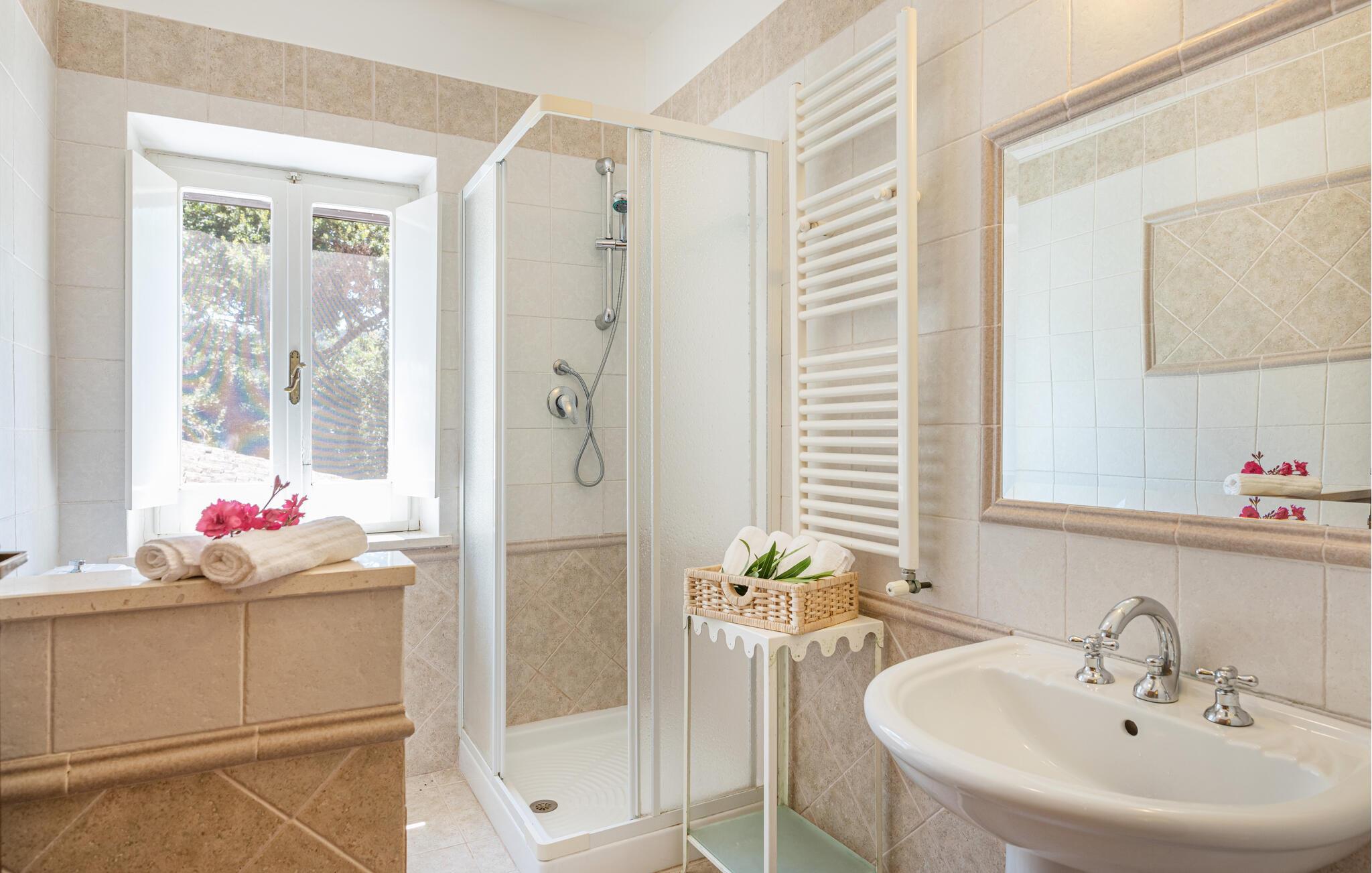 Das großzügige Ferienhaus nahe Orvieto, eingebettet in die grüne Hügellandschaft Mittelitaliens, bietet auf drei Etagen Platz für mehrere Familien oder eine größere Reisegruppe, die gemeinsam entspannen und die Region erkunden möchten. Erleben Sie gemütliche Abende im großen Wohnzimmer mit Kamin oder bereiten Sie ein festliches Essen in der voll ausgestatteten Küche zu. Nutzen Sie die zweite Küche, falls Sie noch mehr Raum zum Kochen benötigen, und genießen Sie Ihre Mahlzeiten im stilvollen Essbereich oder auf der großzügigen Veranda mit gemauertem Grill.