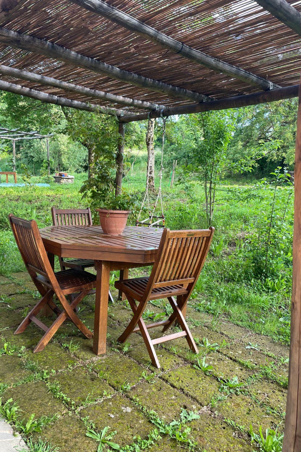 Der große Garten ist zur gemeinsamen Nutzung bestimmt und komplett eingezäunt, was Ihrem Aufenthalt ein Gefühl der Ruhe und Sicherheit verleiht. Der Außenbereich ist für entspannende Abende oder ruhige Morgenstunden gedacht, wo das Grün der Natur Sie in eine erholsame Umarmung hüllt.