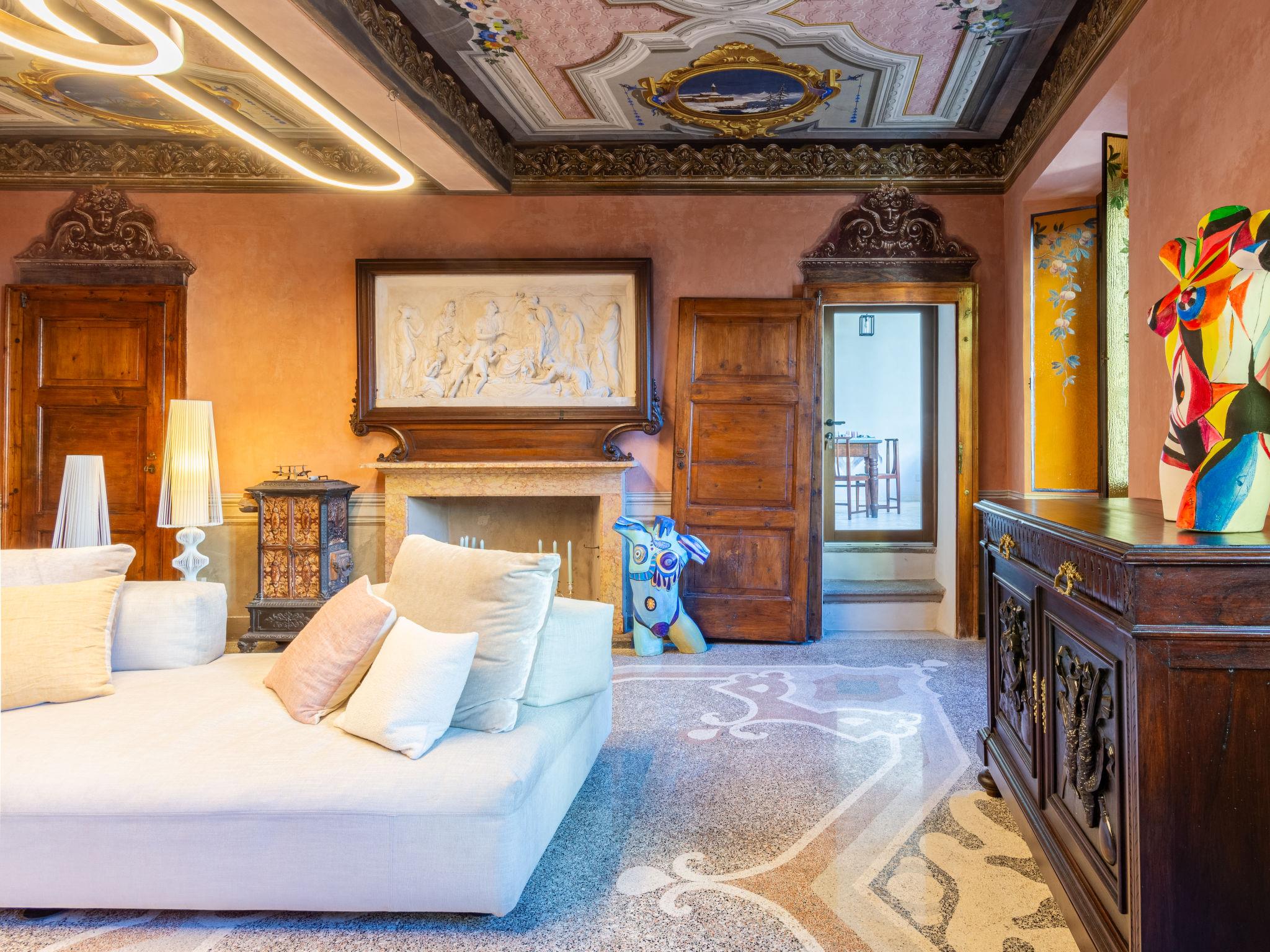 Luxuriöse, historische Villa "La Loggia", auf 2 Stockwerken, einseitig angebaut, aus dem 18. Jahrhundert, renoviert im Jahre 2024. 2 Wohnungen im Ferienhaus. Oberhalb von Osteno, im Ortsteil Claino, 8 km vom Zentrum von Porlezza, 24 km vom Zentrum von Lugano, 36 km vom Zentrum von Como, exzellente Lage: Absolut zentral und dennoch ruhig, 2 km vom See, in einer Fussgängerzone. Heizung nur verfügbar von 15.Okt. - 15.Apr.. Zufahrt bis 50 m zum Haus. 50 m Fussweg bis zum Haus. Öffentliche Parkplätze 50 m auf der Strasse. Supermarkt 8 km, Restaurant 30 m, Bar 50 m, Bushaltestelle 100 m, Bahnstation "Lugano" 24 km, Kieselstrand "Osteno-Lago di Lugano" 2 km, Freibad 7 km. Jacht-Hafen 8 km, Golfplatz (9 Loch) 10 km, Surfschule 8 km, Reitstall 8 km, Wanderwege ab Haus 200 m. Nahe gelegene Sehenswürdigkeiten: Grotte di Rescia, Cascate di Begna, Villa Fogazzaro Roi, Balcone d'italia - Sighignola, Menaggio, Lugano. Bekannte Seen in der Umgebung sind gut erreichbar: Lago di Como. Wandergebiete: Val d'Intelvi-Pigra-Alpi, Monte Crocione, San Benedetto in Val Perlana. Bitte beachten: Fahrzeug empfohlen. Der Besitzer akzeptiert keine Jugendgruppen.