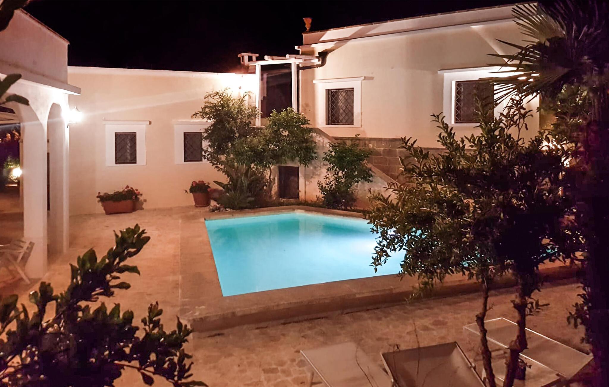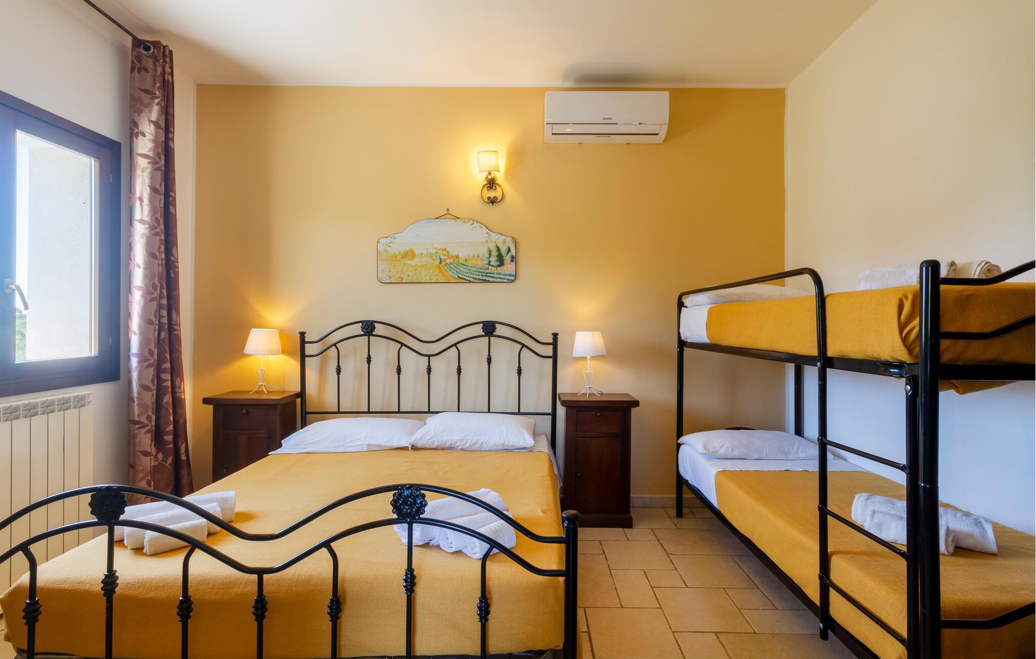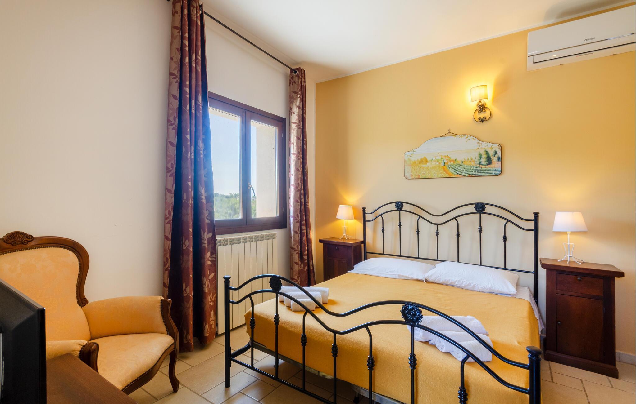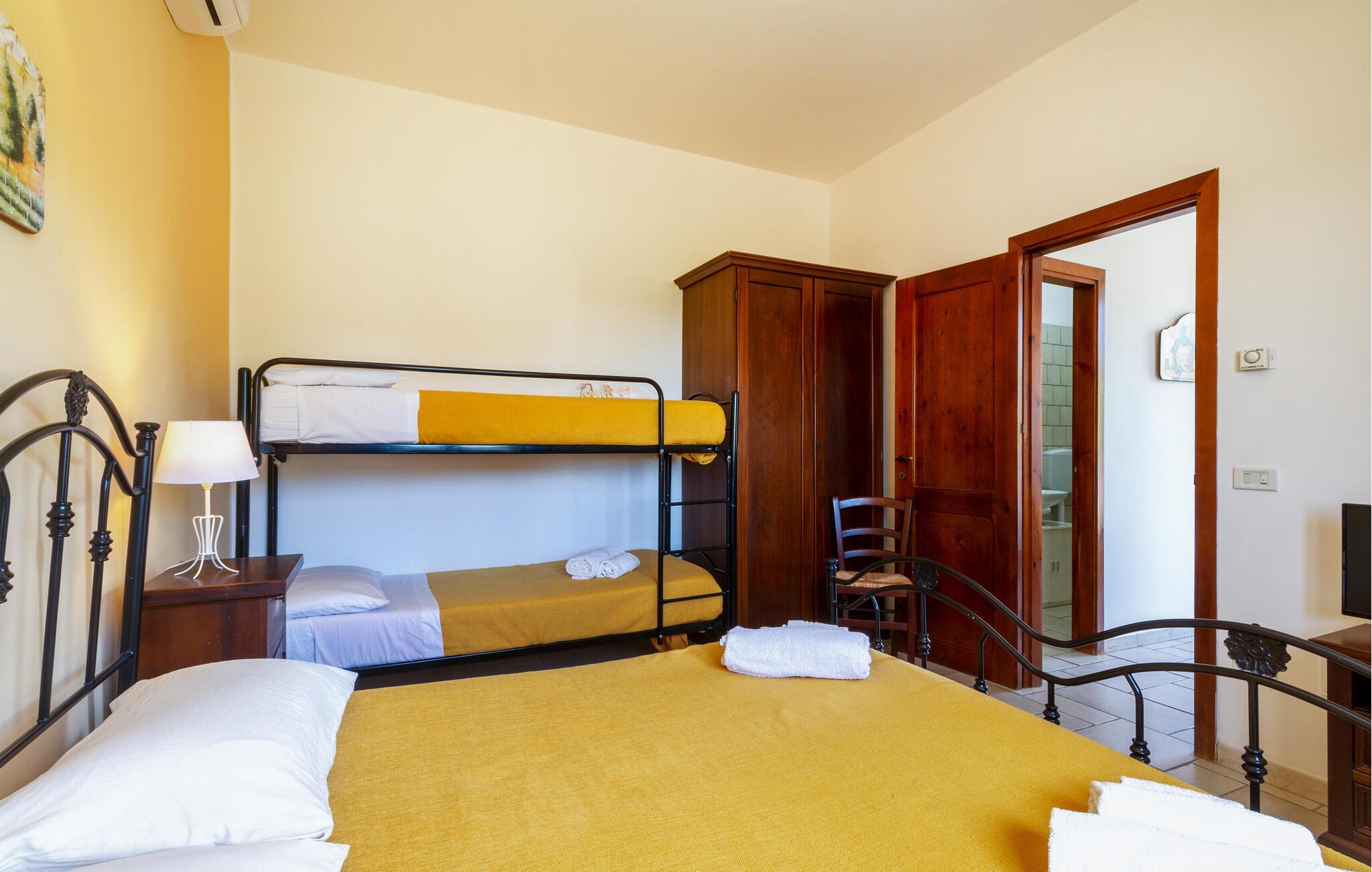 Das Highlight dieses Ferienhauses ist der weitläufige Außenbereich. Springen Sie in den großzügigen Pool, den Sie sich mit anderen Urlaubsgästen teilen, und genießen Sie eine Abkühlung unter der italienischen Sonne. Entspannen Sie auf der schattigen Veranda oder nehmen Sie hier Ihre Mahlzeiten ein. Der liebevoll angelegte Garten mit mediterranen Pflanzen und gemütlichen Sitzgelegenheiten bietet zahlreiche Rückzugsorte zum Erholen. Nutzen Sie die überdachte Außenküche für gesellige Abende im Freien.