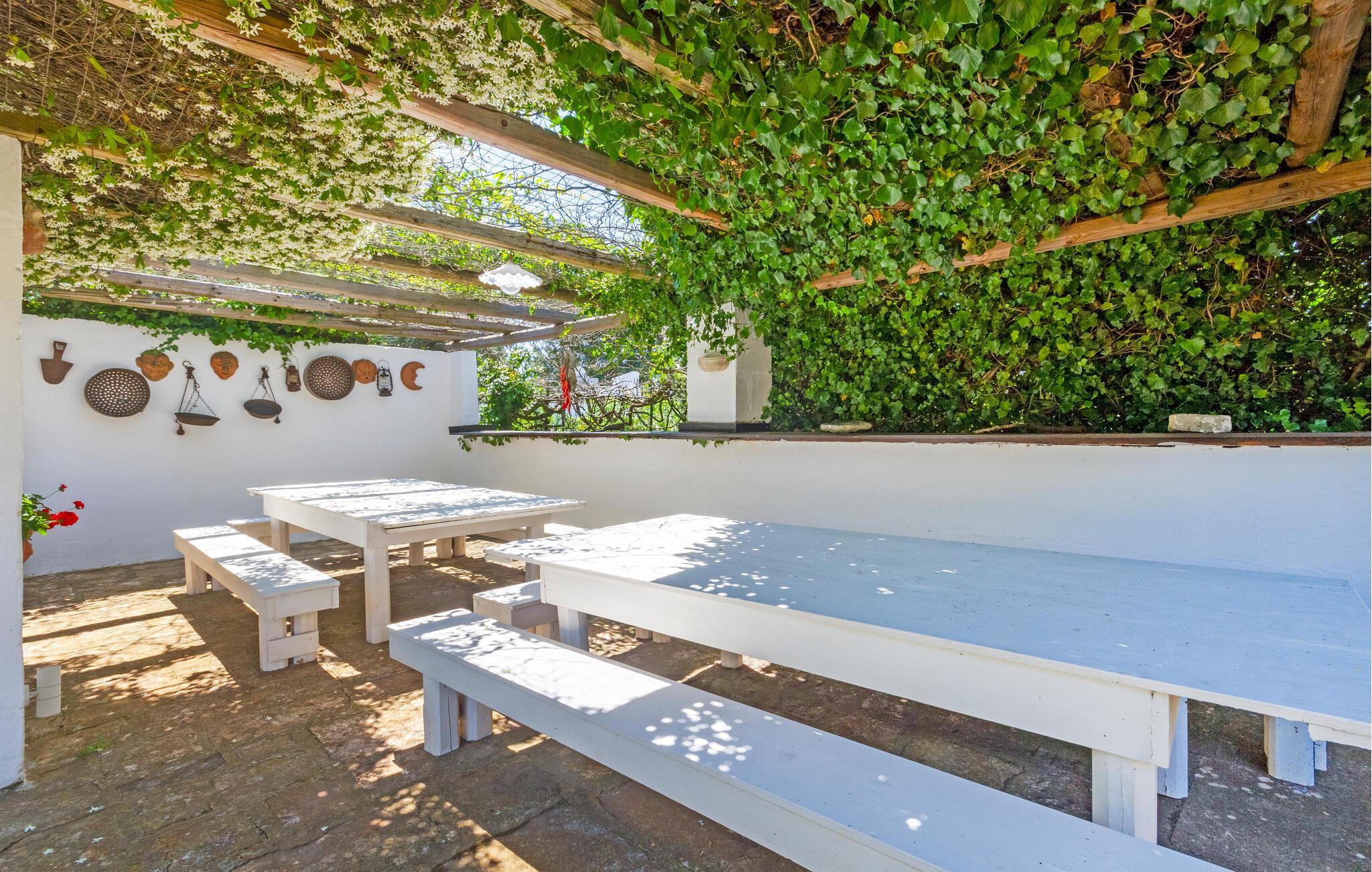 Das Highlight dieses Ferienhauses ist der weitläufige Außenbereich. Springen Sie in den großzügigen Pool, den Sie sich mit anderen Urlaubsgästen teilen, und genießen Sie eine Abkühlung unter der italienischen Sonne. Entspannen Sie auf der schattigen Veranda oder nehmen Sie hier Ihre Mahlzeiten ein. Der liebevoll angelegte Garten mit mediterranen Pflanzen und gemütlichen Sitzgelegenheiten bietet zahlreiche Rückzugsorte zum Erholen. Nutzen Sie die überdachte Außenküche für gesellige Abende im Freien.