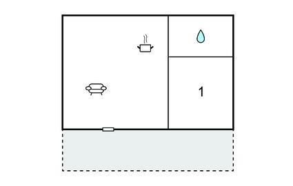 Wohnraum/Küche - 1 Schlafmöglichkeit. (Schlafsofa,Matratze,Sonstiges).
