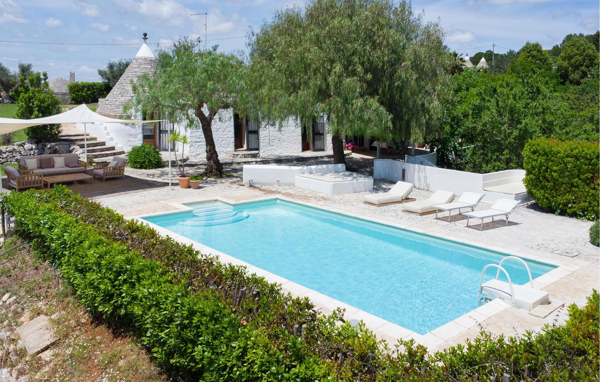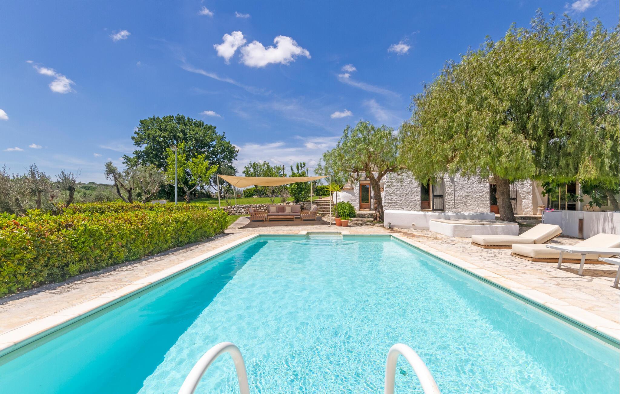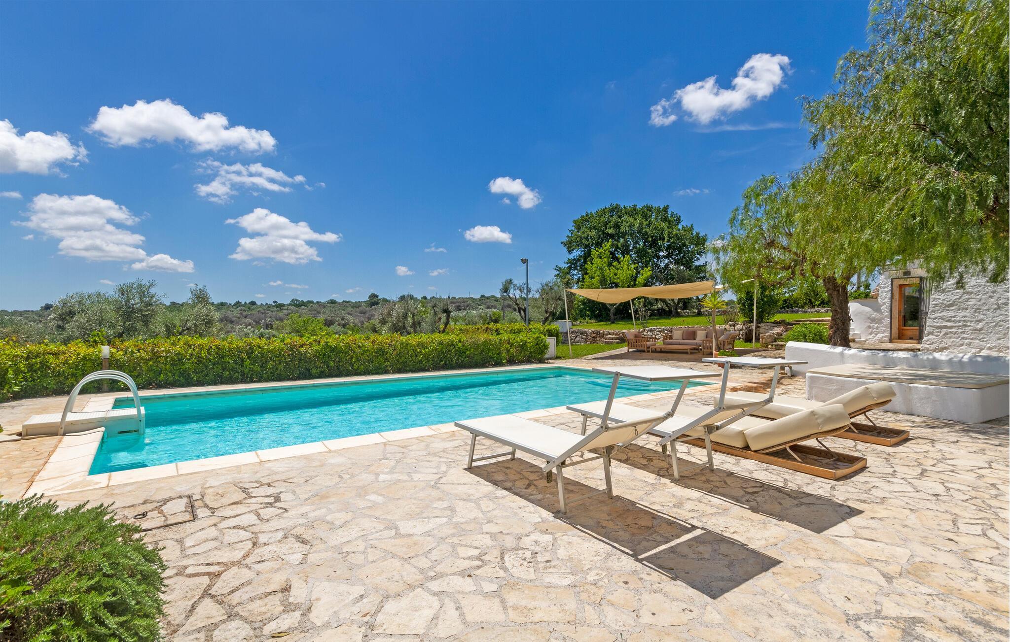 Genießen Sie die wunderbare Aussicht im komfortablen Ferienhaus mit Pool.