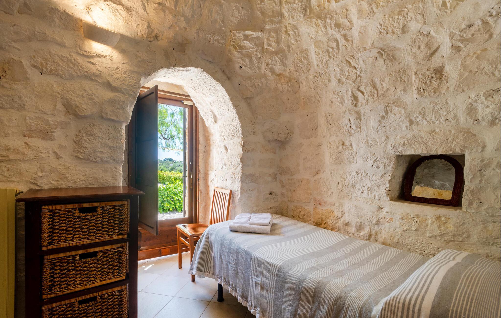 Schlendern Sie durch die engen, verwinkelten Gassen der Altstadt, bewundern Sie die strahlend weißen Häuser und genießen Sie das mediterrane Flair in einem der zahlreichen Cafés. Für Kulturliebhaber bietet Ostuni spannende Sehenswürdigkeiten wie die gotische Kathedrale Santa Maria Assunta oder das beeindruckende Castello Dentice di Frasso in Carovigno. In den Sommermonaten finden zudem zahlreiche traditionelle Feste statt. Nur wenige Kilometer entfernt locken die goldenen Sandstrände der Adriaküste mit kristallklarem Wasser und sanften Wellen, ideal für entspannte Tage am Meer oder spannende Wassersportaktivitäten.