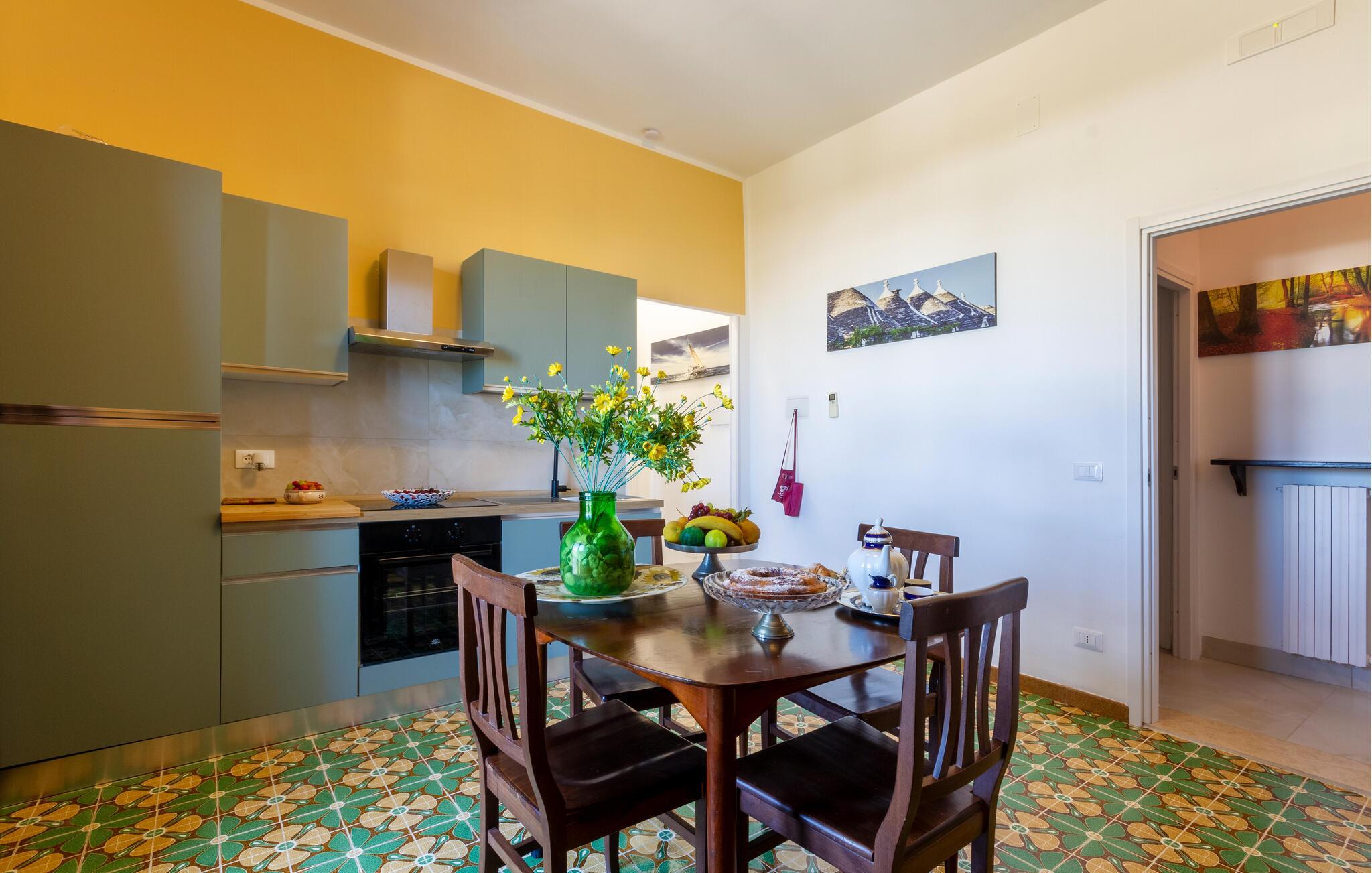 Diese schöne, gepflegte Ferienwohnung heißt Sie nur wenige Schritte von der Küste entfernt willkommen. Bereiten Sie in der geräumigen Küche gemeinsam leckere Pastagerichte zu und planen Sie Ihre Unternehmungen am einladenden Esstisch. Abends können Sie hier das Erlebte bei einem Glas Wein Revue passieren lassen oder den Tag mit einem Brettspiel ausklingen lassen.