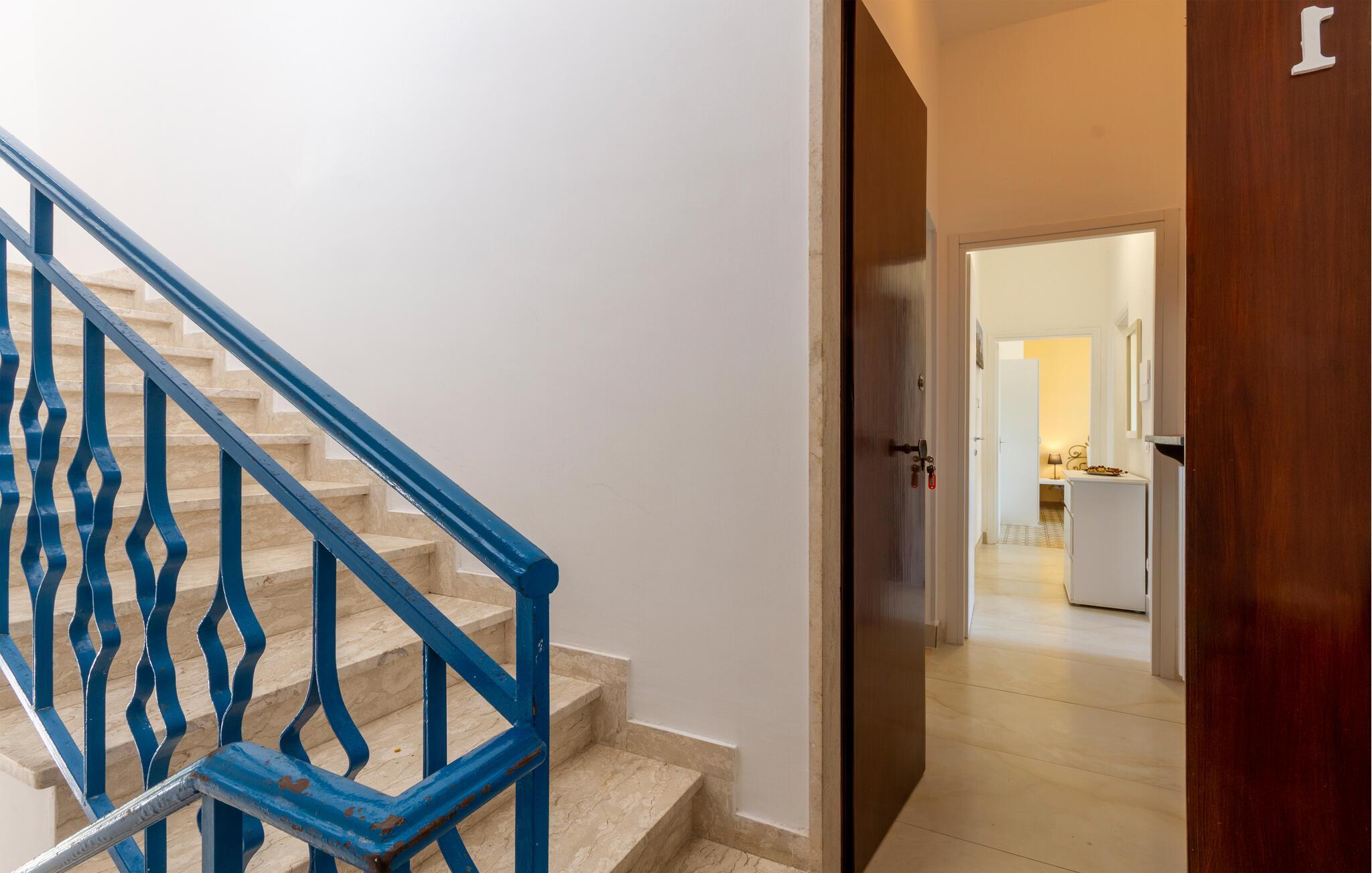Servieren Sie sich in der milden Morgensonne ein ausgiebiges Frühstück auf dem Balkon oder genießen Sie auf der gemeinschaftlichen Dachterrasse den Blick auf das nahegelegene Meer, während Sie die angenehme Brise auf der Sonnenliege auf sich wirken lassen.