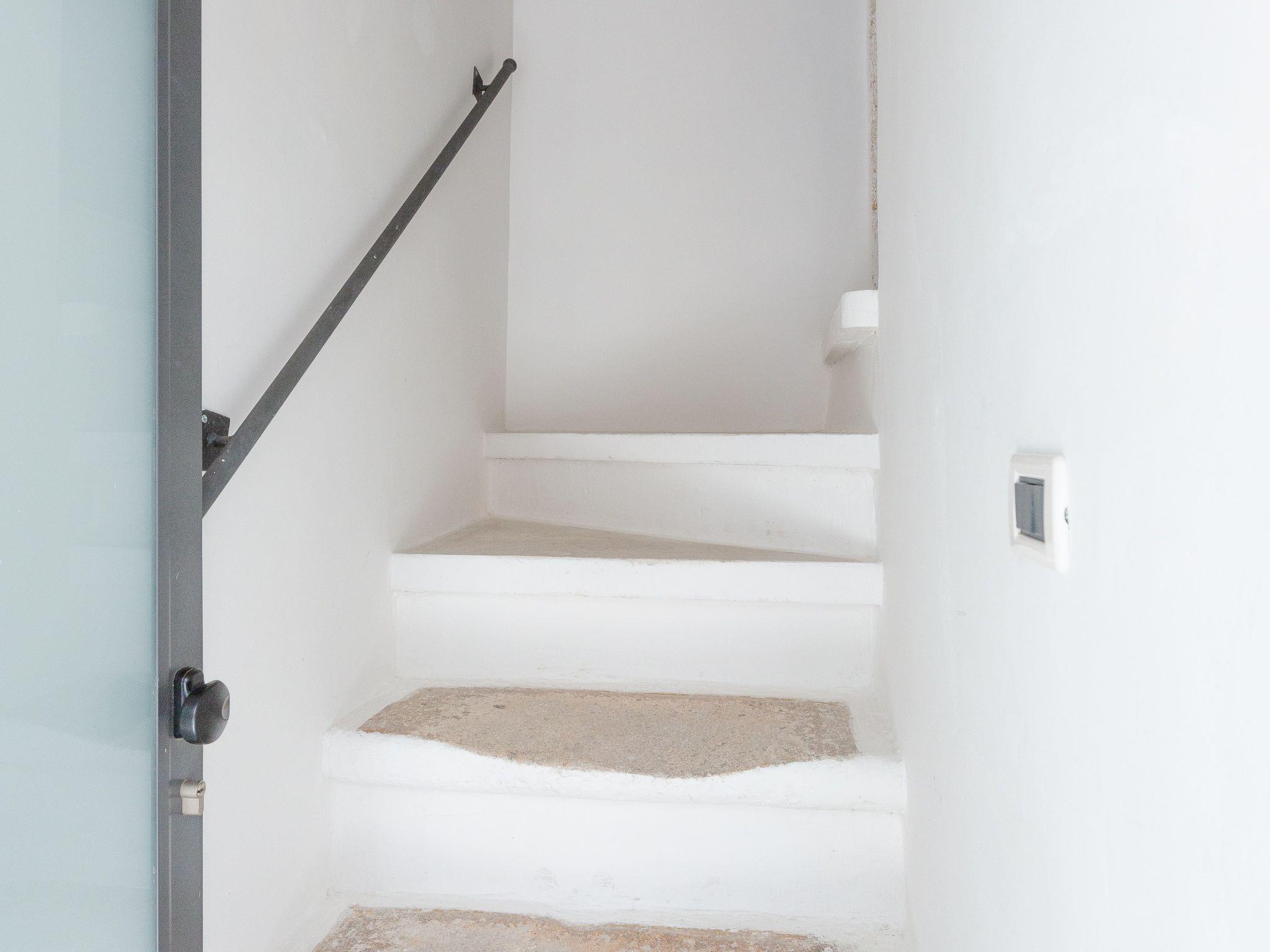 Um die Terrasse zu erreichen, gibt es eine Treppe mit unregelmäßigen Stufen. Der Übergang von einem Stockwerk zum anderen erfordert Sportlichkeit.