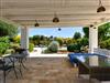 Charakteristisch sind die schöne Fassade, die so blau wie der apulische Himmel ist, und der romantische Steinbalkon. Im Außenbereich stehen den Gästen ein privater Swimmingpool und zwei Terrassen zur Verfügung, die von üppigen, weitläufigen Gärten mit Rasenflächen, Olivenbäumen, Blumen und mediterraner Macchia umgeben sind. Die stimmungsvolle Umgebung, das Schwimmbad, die Entspannungsbereiche und das Spa mit türkischem Bad machen es zu einem idealen Ort für einen erholsamen und charmanten Aufenthalt.