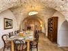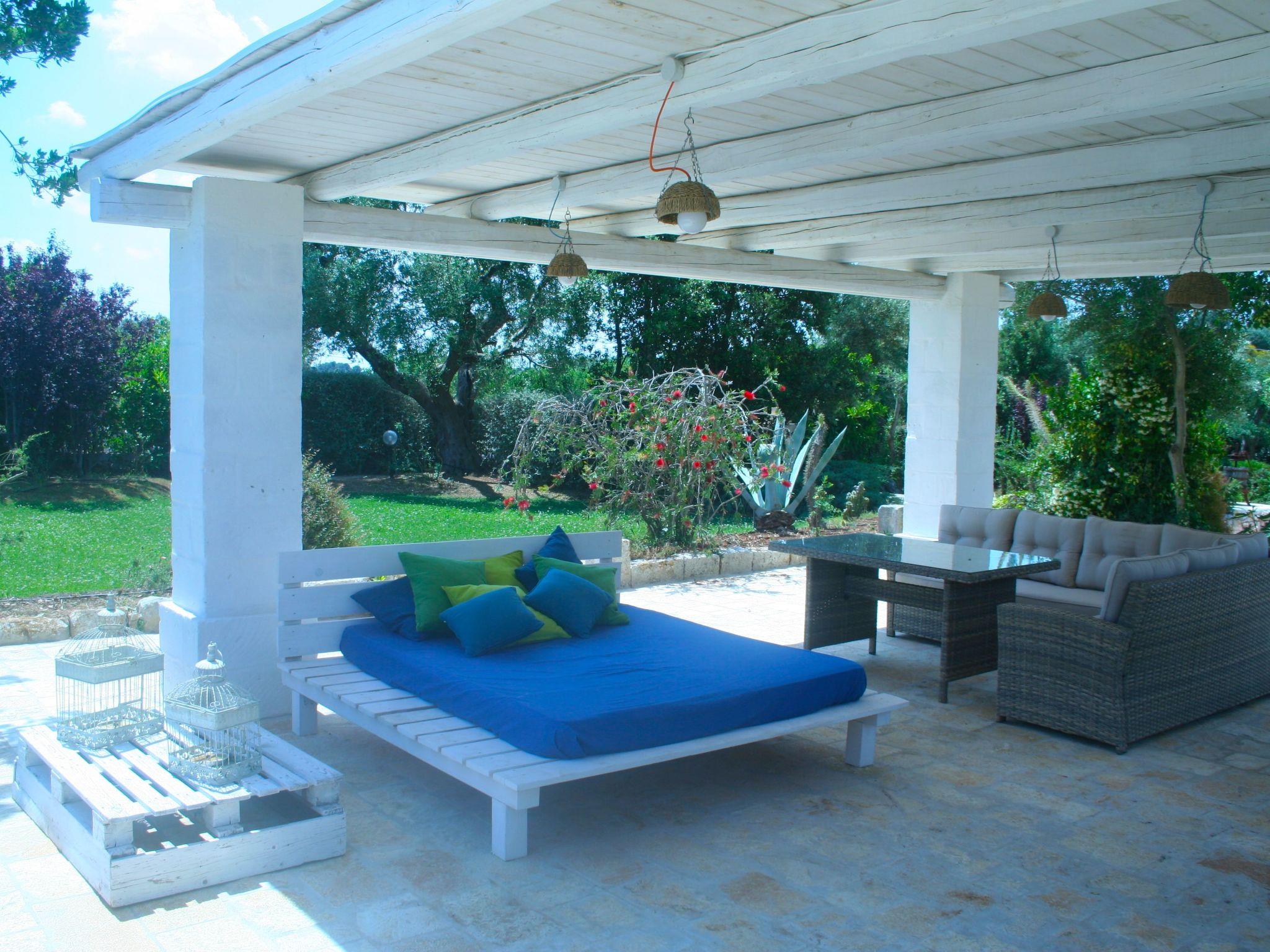 Charakteristisch sind die schöne Fassade, die so blau wie der apulische Himmel ist, und der romantische Steinbalkon. Im Außenbereich stehen den Gästen ein privater Swimmingpool und zwei Terrassen zur Verfügung, die von üppigen, weitläufigen Gärten mit Rasenflächen, Olivenbäumen, Blumen und mediterraner Macchia umgeben sind. Die stimmungsvolle Umgebung, das Schwimmbad, die Entspannungsbereiche und das Spa mit türkischem Bad machen es zu einem idealen Ort für einen entspannenden und charmanten Aufenthalt.