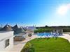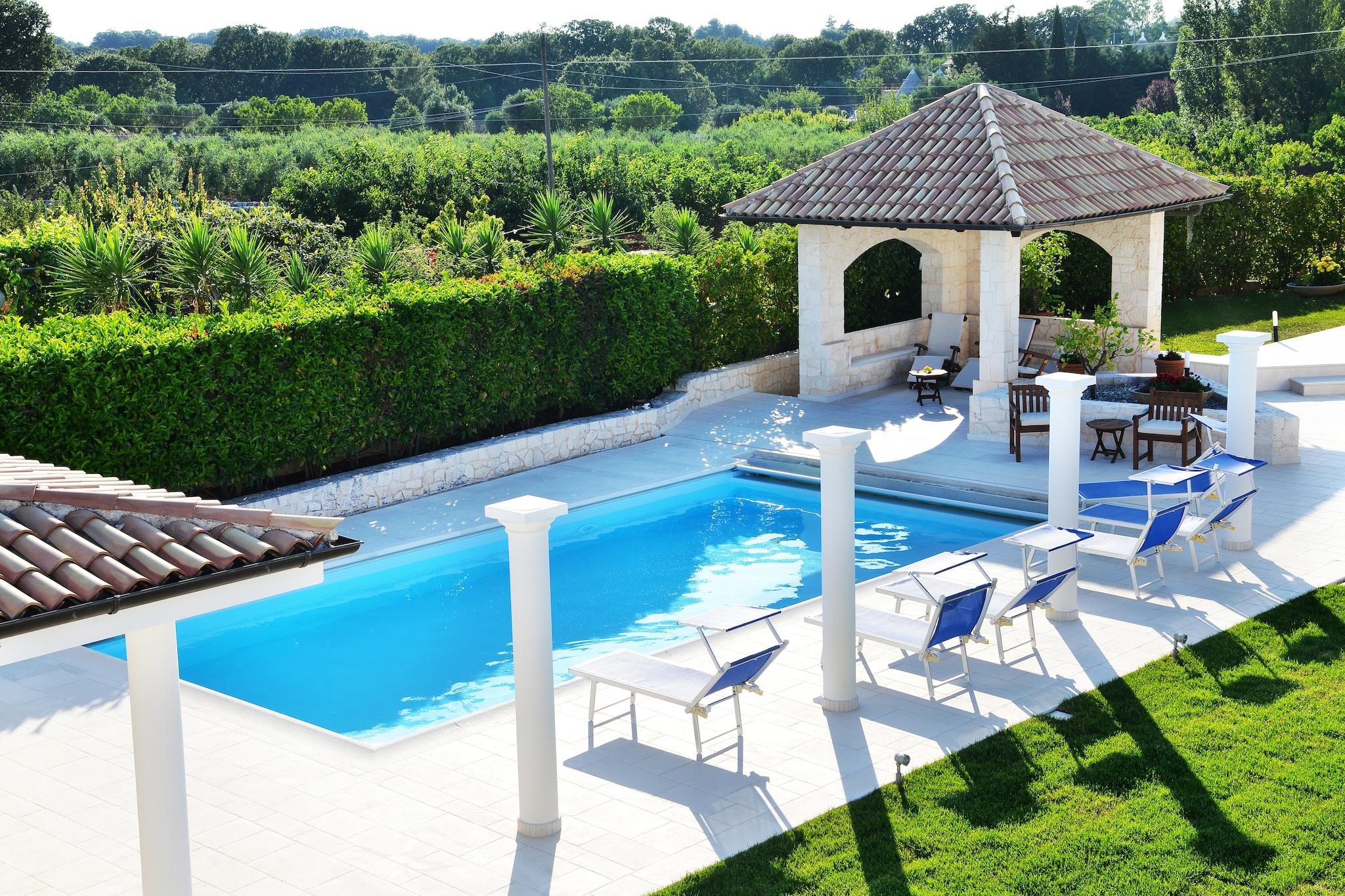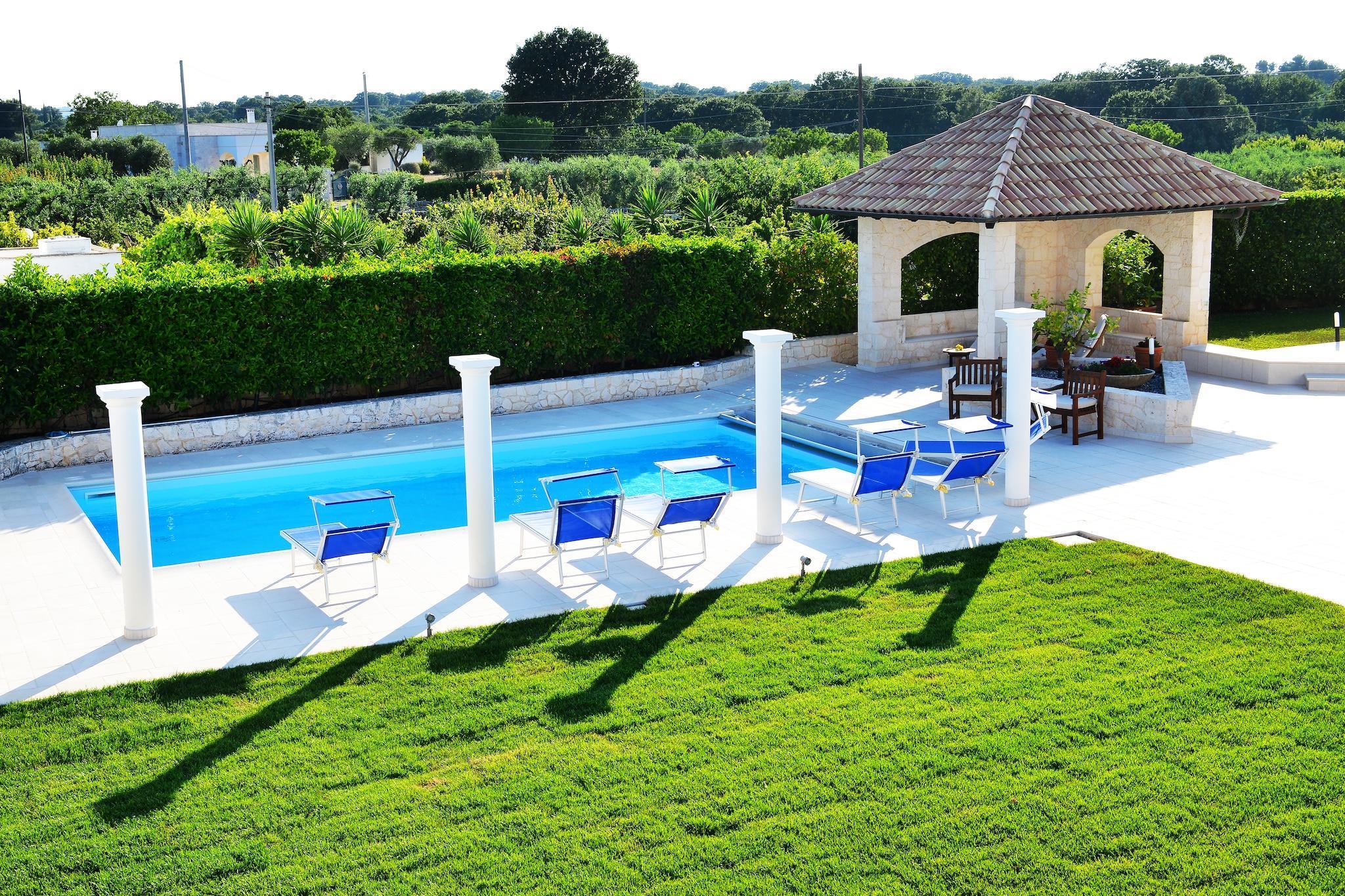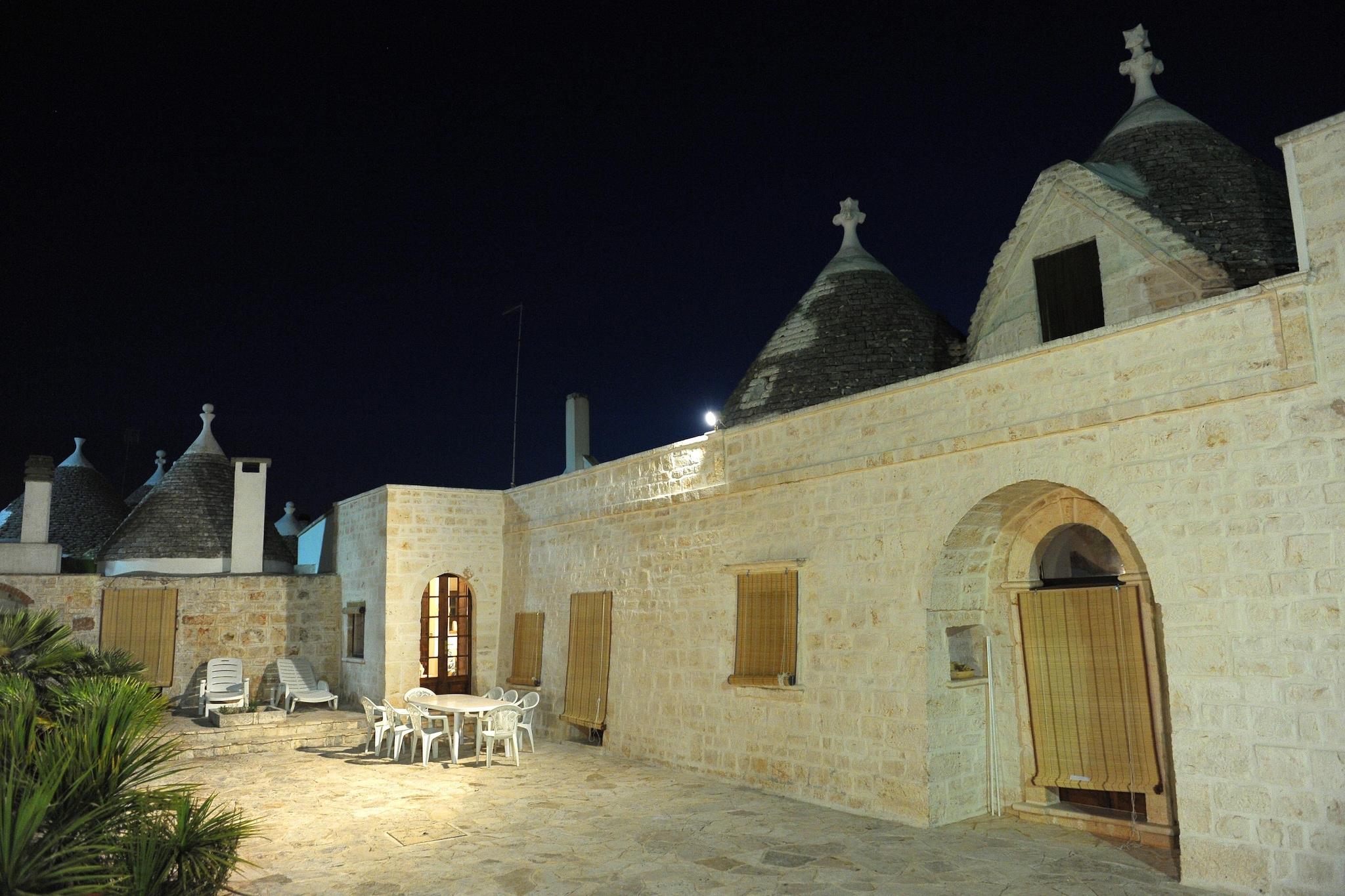 Ferienhaus mit Trulli und wunderschönem Außenbereich. Für bis zu 10 Personen bleiben hier keine Wünsche offen. Im Garten können Sie im Pool plantschen (Mai bis Oktober), sich ein Sonnenbad gönnen, oder unter den schattigen Veranden eine leckere apulische Mahlzeit einnehmen. Hier ist genug Platz um beisammen zu sein und das sonnige Wetter zu genießen. Das geräumige Ferienhaus ist hell und gemütlich eingerichtet. Es verfügt über eine Klimaanlage und Heizung. 5 Schlafzimmer und 2 Bäder sind vorhanden. Die Schlafzimmer haben alle Fliegengitter. Die Küche ist gut ausgestattet, zudem steht ein Grill zur Verfügung. Der Strand ist schnell und gut erreichbar. Üppige Natur, unberührtes Meer, Trulli und Masserien, alte mediterrane Dörfer, jahrhundertealte Olivenbäume und üppige Weinberge, archäologische Ausgrabungen, religiöse Feste und Volkstänze. Das ist das Itria-Tal, das man 365 Tage im Jahr erleben kann. Die antiken Dörfer Cisternino und Locorotondo sowie die Städte Martina Franca und Fasano bilden die Kulisse eines Tals, in dem die Geschmäcker und Düfte den Besucher umhüllen und ihn in eine Entspannung mit dem Charme vergangener Zeiten führen. Lassen Sie sich von Ihren Sinnen leiten und entdecken Sie ganz unterschiedliche Lebensräume: jahrhundertealte Olivenhaine und Weinberge, versteinerte Dünen und bezaubernde Strände.