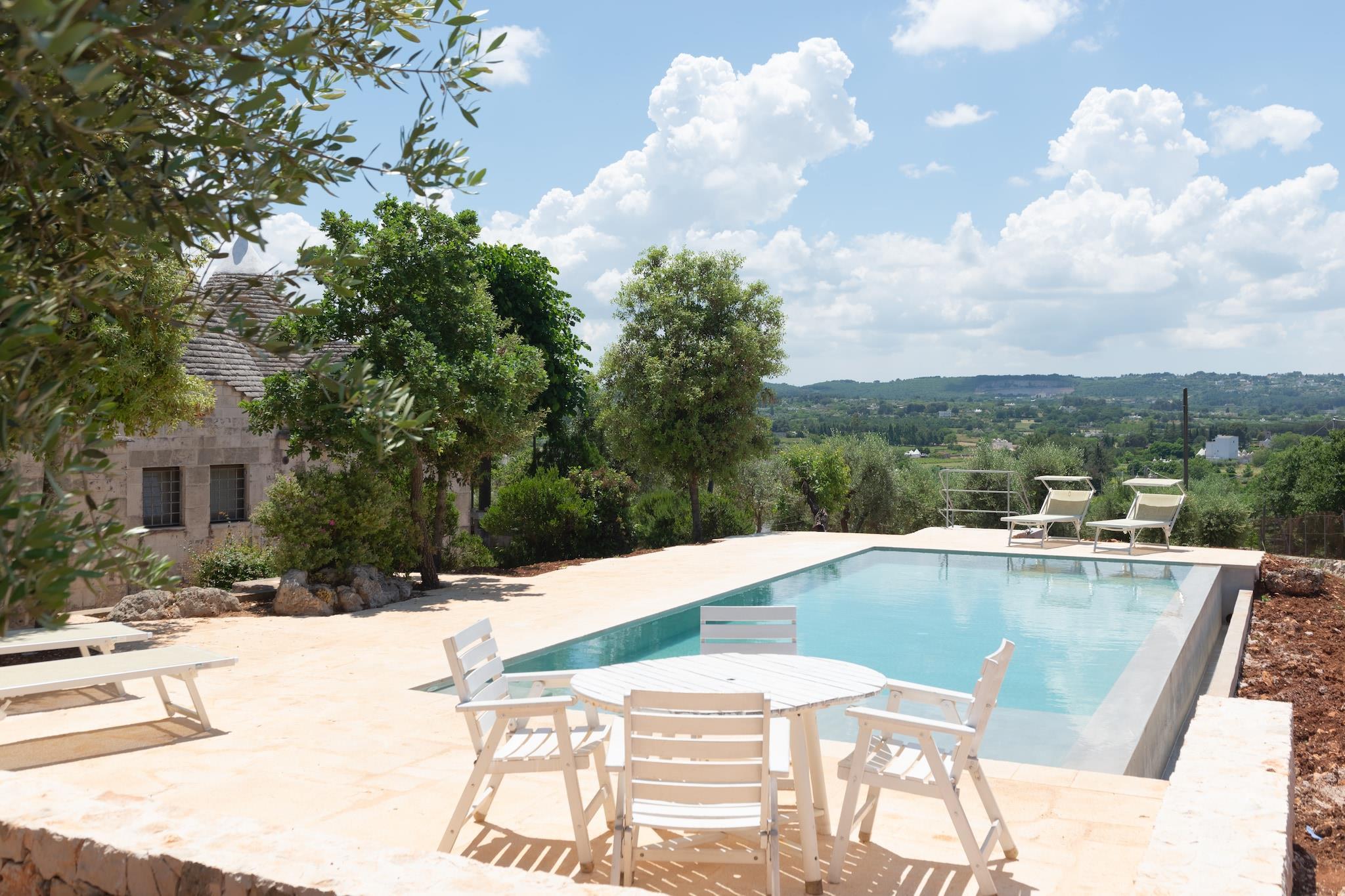 Im Grünen des Valle d'Itria bietet Trullo Tre Corbezzoli das Beste für einen erholsamen und komfortablen Urlaub in Apulien, nur wenige Kilometer von den Stränden von Marina di Ostuni entfernt. Der Trullo verfügt über eine Kapazität von 6 Betten und ist einfach eingerichtet, aber mit moderm Komfort ausgestattet. Es ist ein typisches Haus in originalen Trulli mit 2 Schlafzimmern und 2 Bädern, Wohnzimmer und sehr gut ausgestatteter Küche, Panorama-Swimmingpool zur alleinigen Nutzung, Pinienwald. Durch den Kontakt mit der Natur können Sie Ihren Urlaub in absoluter Entspannung genießen. Die Stärke dieser Struktur ist das Äußere, denn sie verfügt über einen 10x4-Panoramapool mit einem atemberaubenden Blick auf das Itria-Tal, welches seinesgleichen sucht, und den herrlichen Pinienwald neben dem Trullo, der zum Spazierengehen und Genießen absoluter Momente einlädt, erholsame Ruhe umgeben von Natur.