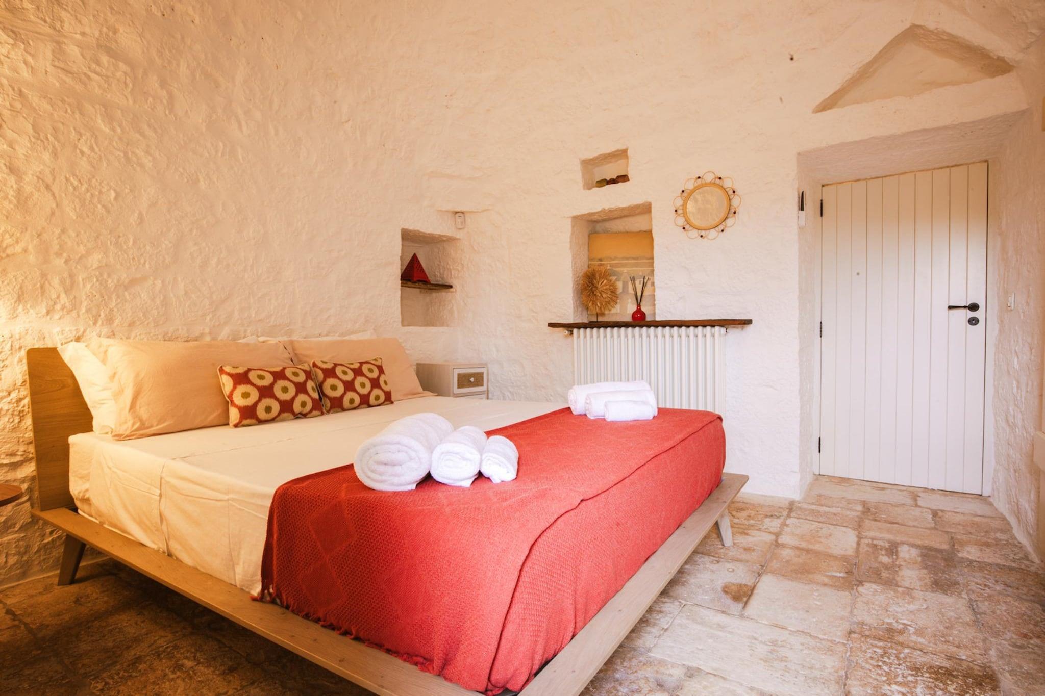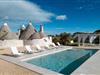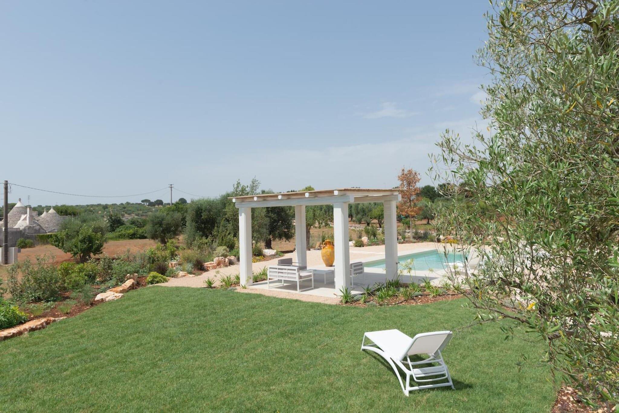 Ferienhaus mit Trulli und wunderschönem Außenbereich nur wenige Kilometer von Cisternino entfernt verfügt über 3 Doppelzimmer, alle mit eigenem Bad, gut ausgestatteter Küche und Wohnzimmer. Für bis zu 6 Personen bleiben hier keine Wünsche offen. Eine authentische Residenz aus dem 18. Jahrhundert. Das geräumige Ferienhaus ist hell, stilvoll und gemütlich eingerichtet. Es verfügt über eine Klimaanlage und Heizung. 3 Schlafzimmer und 3 Bäder sind vorhanden. Die Küche ist gut ausgestattet. Der große, schöne Außenbereich und der herrliche Swimmingpool zur alleinigen Nutzung machen PetraLux zu einem echten Paradies, das Sie intensiv erleben können und wohlverdiente Entspannung genießen. Im Garten können Sie im Pool plantschen, sich ein Sonnenbad gönnen, oder unter den schattigen Veranden eine leckere apulische Mahlzeit einnehmen. Hier ist genug Platz um beisammen zu sein und das sonnige Wetter zu genießen. Üppige Natur, unberührtes Meer, Trulli und Masserien, alte mediterrane Dörfer, jahrhundertealte Olivenbäume und üppige Weinberge, archäologische Ausgrabungen, religiöse Feste und Volkstänze. Das ist das Itria-Tal, das man 365 Tage im Jahr erleben kann. Die antiken Dörfer Cisternino und Locorotondo sowie die Städte Martina Franca und Fasano bilden die Kulisse eines Tals, in dem die Geschmäcker und Düfte den Besucher umhüllen und ihn in eine Entspannung mit dem Charme vergangener Zeiten führen. Lassen Sie sich von Ihren Sinnen leiten und entdecken Sie ganz unterschiedliche Lebensräume: jahrhundertealte Olivenhaine und Weinberge, versteinerte Dünen und bezaubernde Strände.