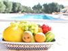 Küche(Kochplatte, Wasserkocher, Toaster, Kaffeemaschine, Mikrowelle, Spülmaschine, Kühl-/Gefrierkombination), Wohn/Esszimmer(Doppelschlafcouch, Esstisch), Schlafzimmer(Doppelbett), Schlafzimmer(Doppelbett), Badezimmer(Dusche, Bidet, Föhn), Toilette, Außenküche, Grill, Terrasse, Gartenmöbel, Liegen, Pool(alleinige Nutzung, im Garten, 12 x 5 m.), Sonnenschirm