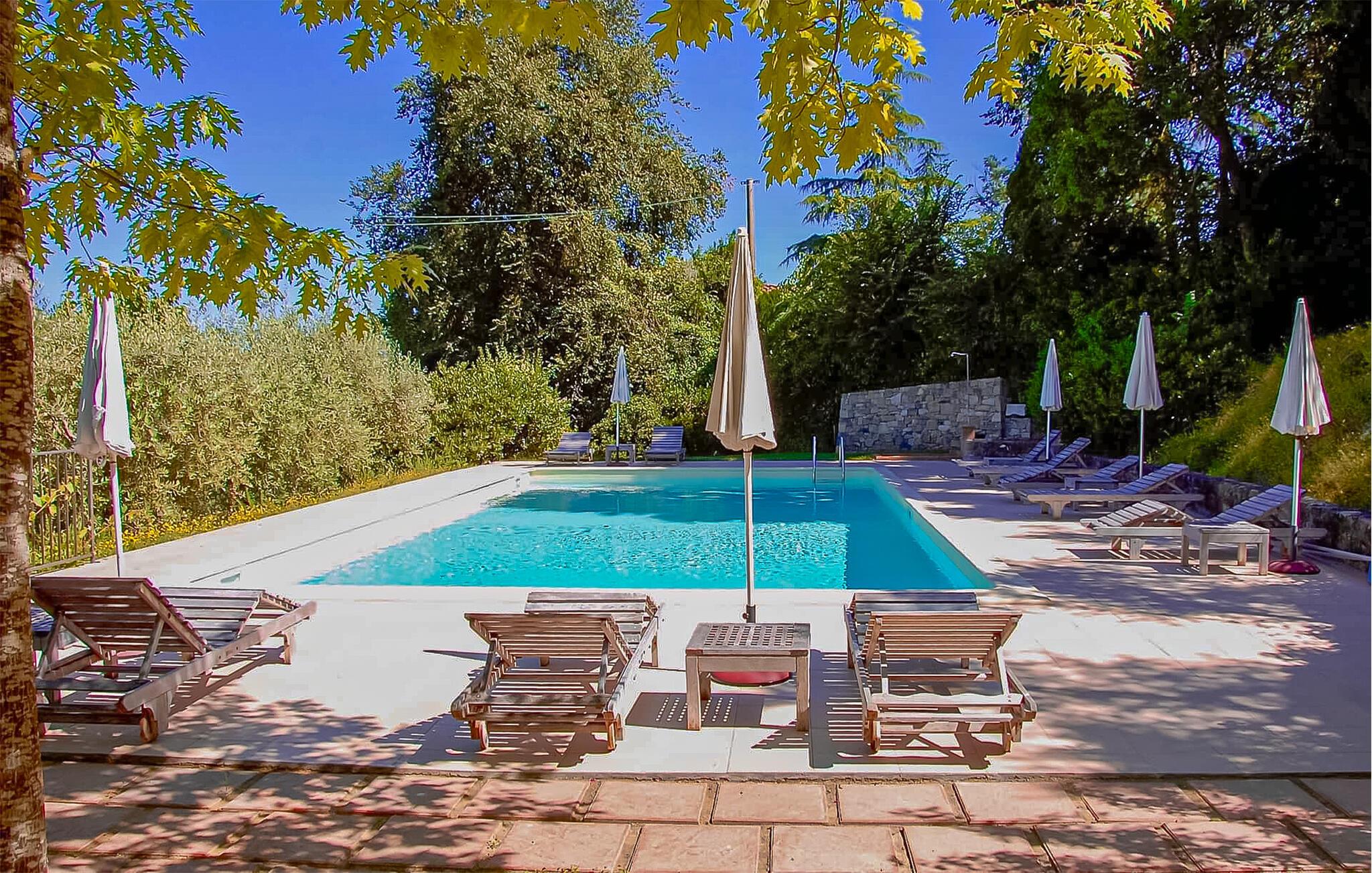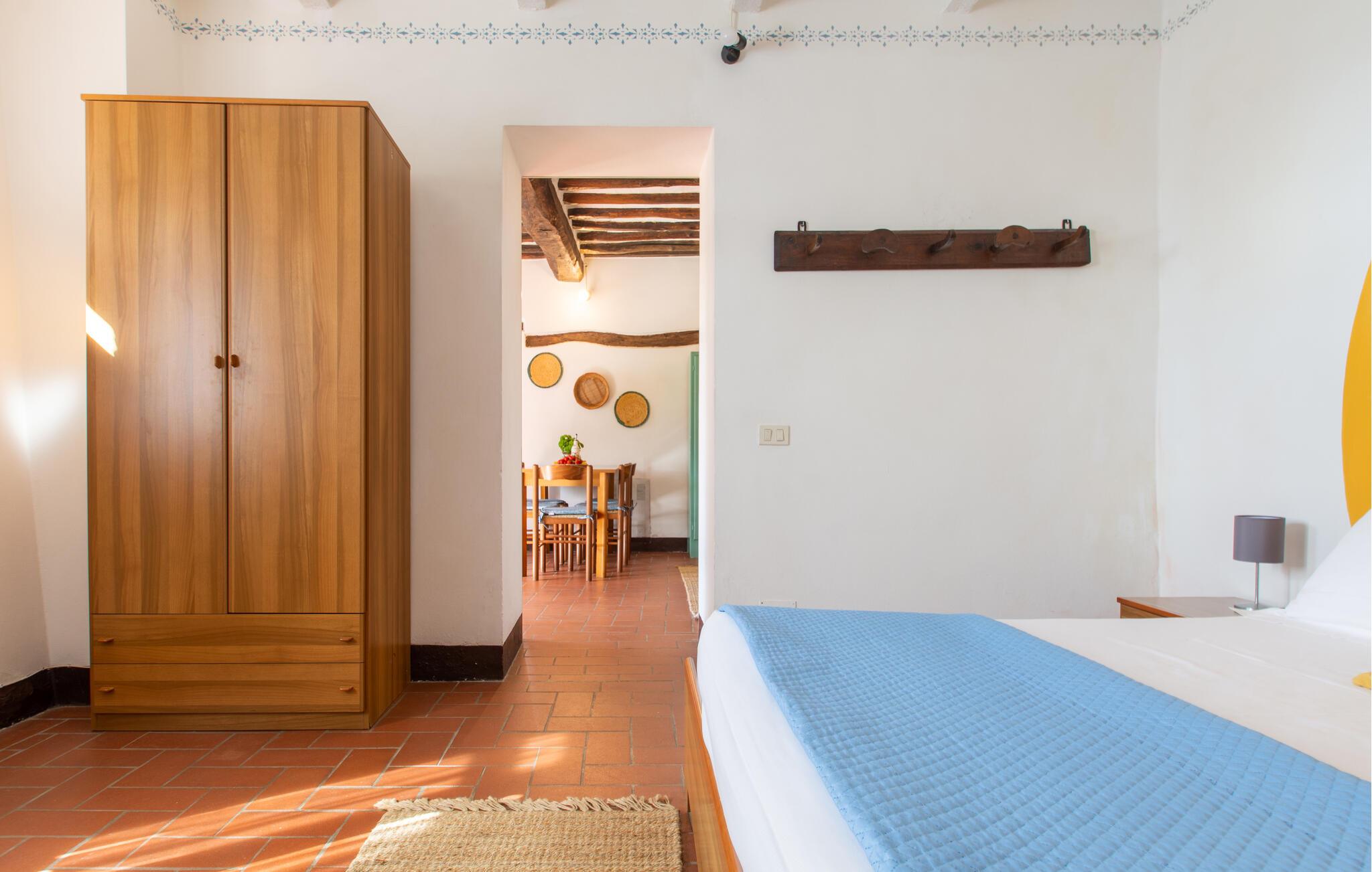 Freuen Sie sich auf diese moderne Ferienwohnung in einem Steinhaus aus dem Jahr 1500. Gelegen in den grünen, umbrischen Hügeln nur wenige Schritte vom historischen Zentrum des Dorfes Paciano bietet Ihnen die Wohnung einen Ort der Ruhe und Erholung. Genießen Sie das liebevolle und authentische Ambiente, die ebenso zeitgemäß ist. Entdecken Sie die großen internen und externen Räume, wo Sie einen Familienurlaub verbringen und entspannen können. Im Haus befindet sich nur eine Ferienwohnung sowie ein Nachbarhaus, die je nach Verfügbarkeit zusammen gebucht werden können. Für die gemeinsame Nutzung der Gäste des Bauernhauses gibt einen schönen Swimmingpool, der von Bäumen umgeben, ist und Privatsphäre bietet. Entspannen Sie sich im Freien und kommen im Schuppen mit Grillplatz zu geselligen Treffen zusammen.