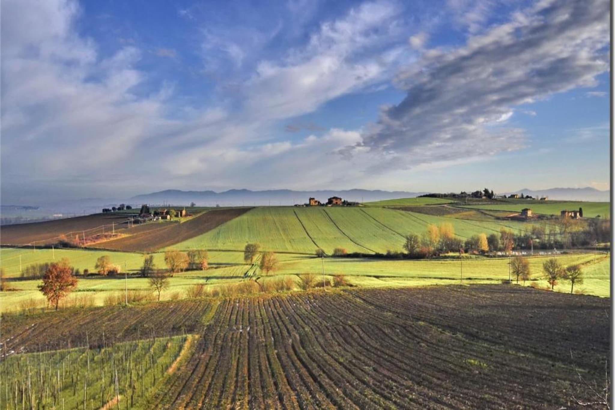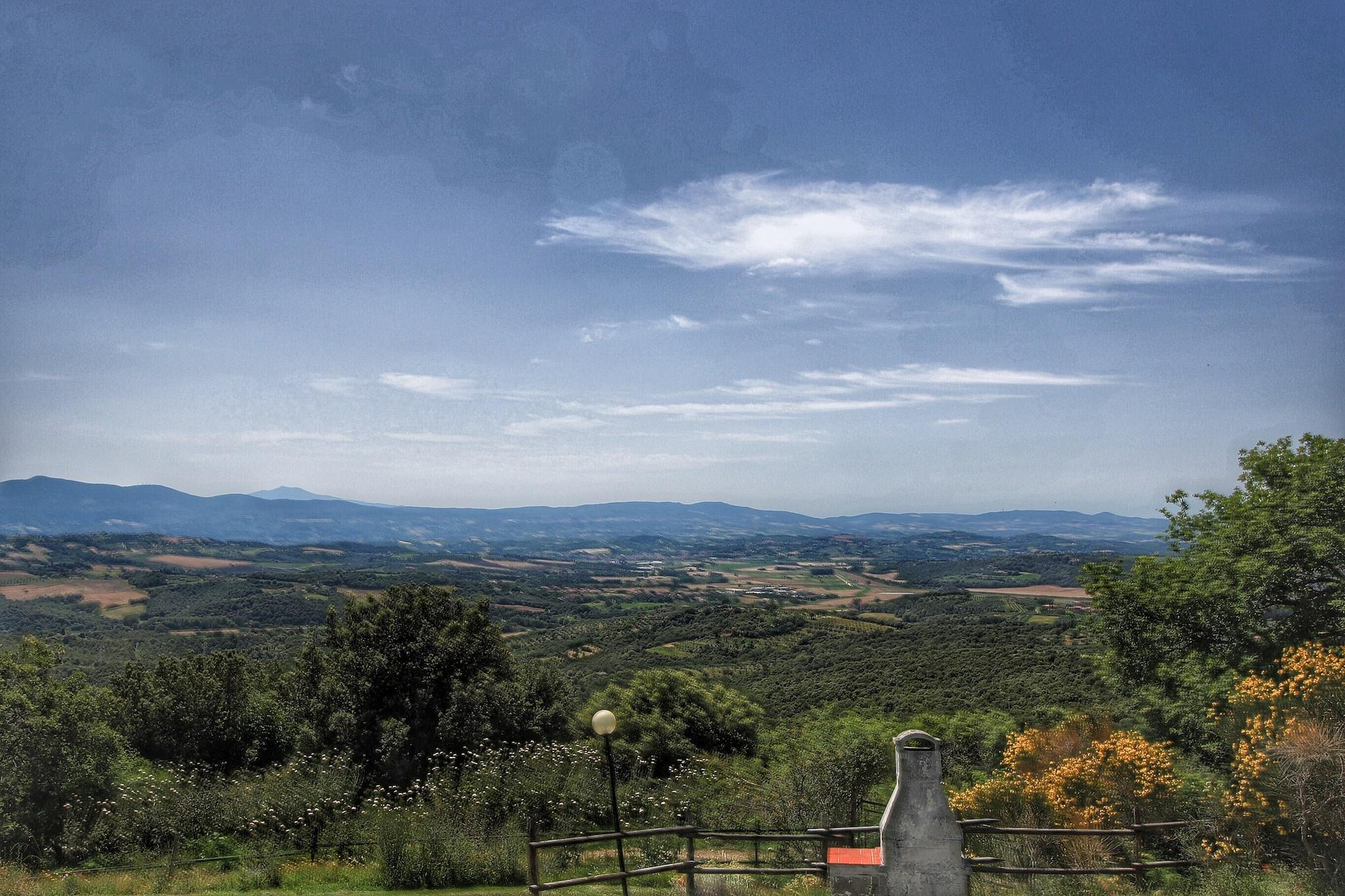 Übernachten Sie in diesem wunderschönen Bauernhaus, das 700 m über dem Meeresspiegel liegt. Das Bauernhaus liegt mitten im Nationalpark Monte Pausillo. Der alte Bauernhof wurde komplett renoviert. Es besteht nun aus einer Reihe attraktiver Wohnungen. Es gibt einen schönen Swimmingpool mit herrlicher Aussicht auf die Hügel. Auf dem Bauernhof gibt es auch einen kleinen Kinderspielplatz. Dieser wunderschöne Bauernhauskomplex liegt 2 km von Paciano entfernt und an der Grenze zwischen Umbrien und der Toskana. Es gibt auch einen 3 km langen Trainingsparcours. Der Wald ist nur 100 m entfernt und lädt zu ausgedehnten Spaziergängen ein. Kaufen Sie den täglichen Bedarf im 3 km entfernten Supermarkt. In der gleichen Entfernung finden Sie nette Restaurants, die leckeres Essen servieren. Aufgrund der steilen Sandstraße mit scharfen Kurven begleitet der Eigentümer des Bauernhauses die Gäste am Anreisetag von seinem Zuhause in Paciano zum Bauernhaus. Sie können problemlos den Hügel hinauffahren und mit dem Auto wieder losfahren. Auf dem Bauernhof gibt es Pferde und es werden Wein und Olivenöl produziert. Bei der Ankunft gibt es vom Hauseigentümer ein Begrüßungsgeschenk.