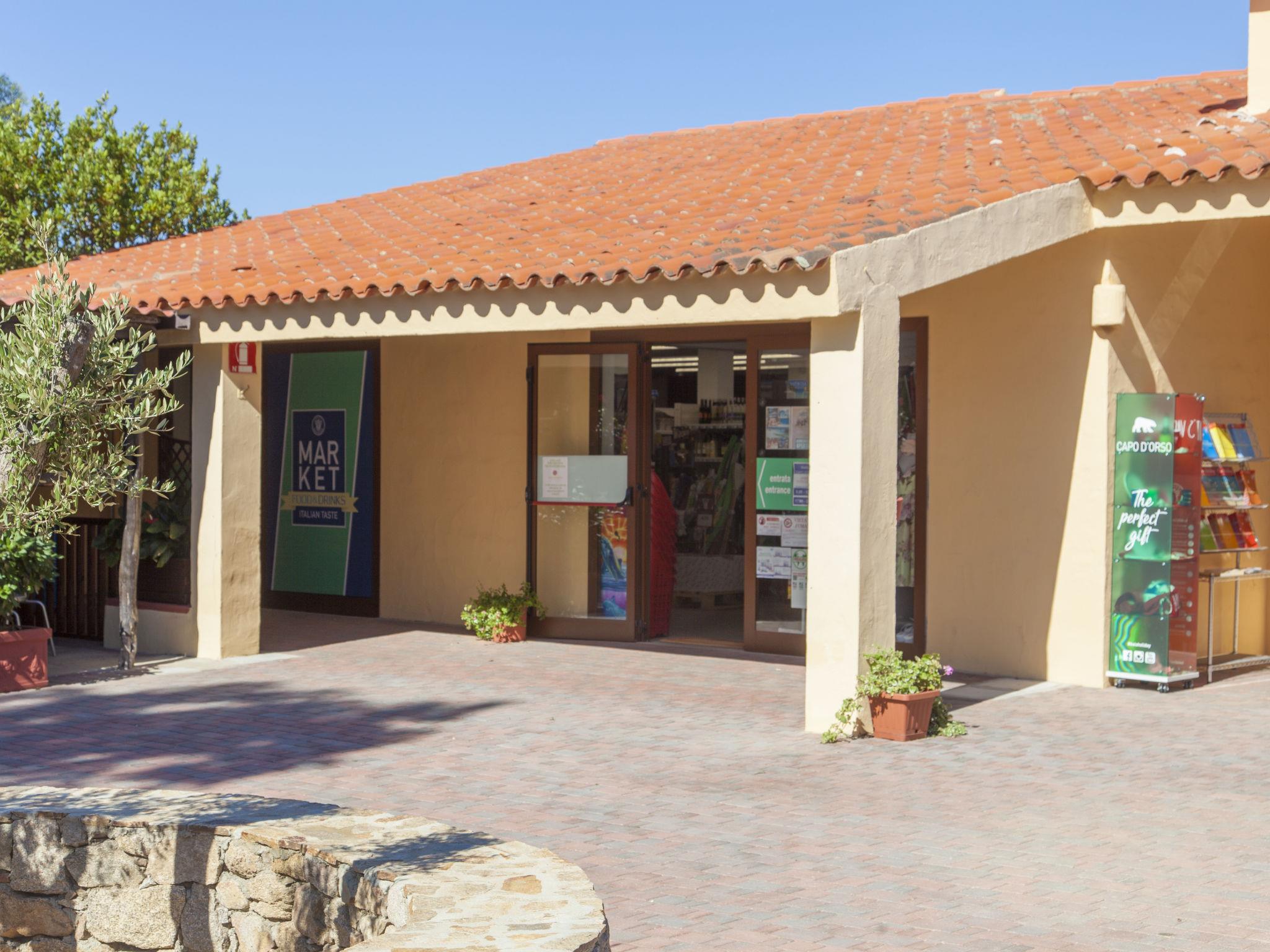 Grosses, kinderfreundliches Feriendorf "Camping Village Capo d'Orso". Im Ortsteil Le Saline, 5.5 km vom Zentrum von Palau, 12 km vom Zentrum von Porto Pollo, 50 m vom Meer, 50 m vom Strand, direkter Zugang zum Strand. Zur Mitbenutzung: Grundstück (eingezäunt) mit Pflanzen und Bäumen, 2 Schwimmbäder (saisonale Verfügbarkeit: 23.Mai. - 15.Sep.). Kinderbecken, Aussendusche, Beachvolleyball. In der Anlage: Restaurant, Bar, Wireless LAN, Einkaufsmöglichkeit. Frühstück Vollpension Halbpension möglich (extra). Supermarkt 4.7 km, Bushaltestelle, Tauchzentrum 50 m. Surfschule, Segelschule 50 m. Nahe gelegene Sehenswürdigkeiten: Isola La Maddalena (by boat) 18 km, La Fortezza di Monte Altura 7.5 km, Porto Cervo 26 km. Bitte beachten: Animation in der Saison. Geeignet für Familien. Badekappenpflicht.