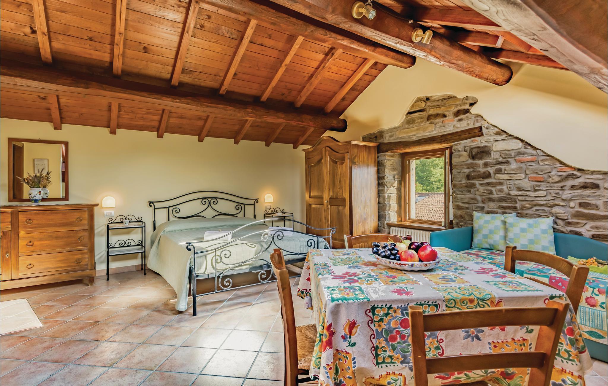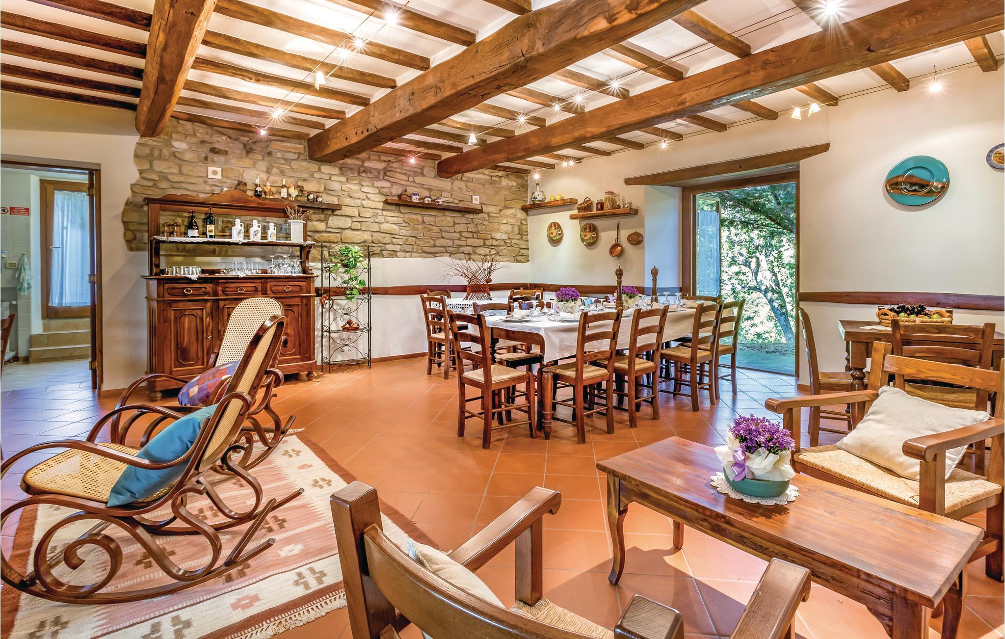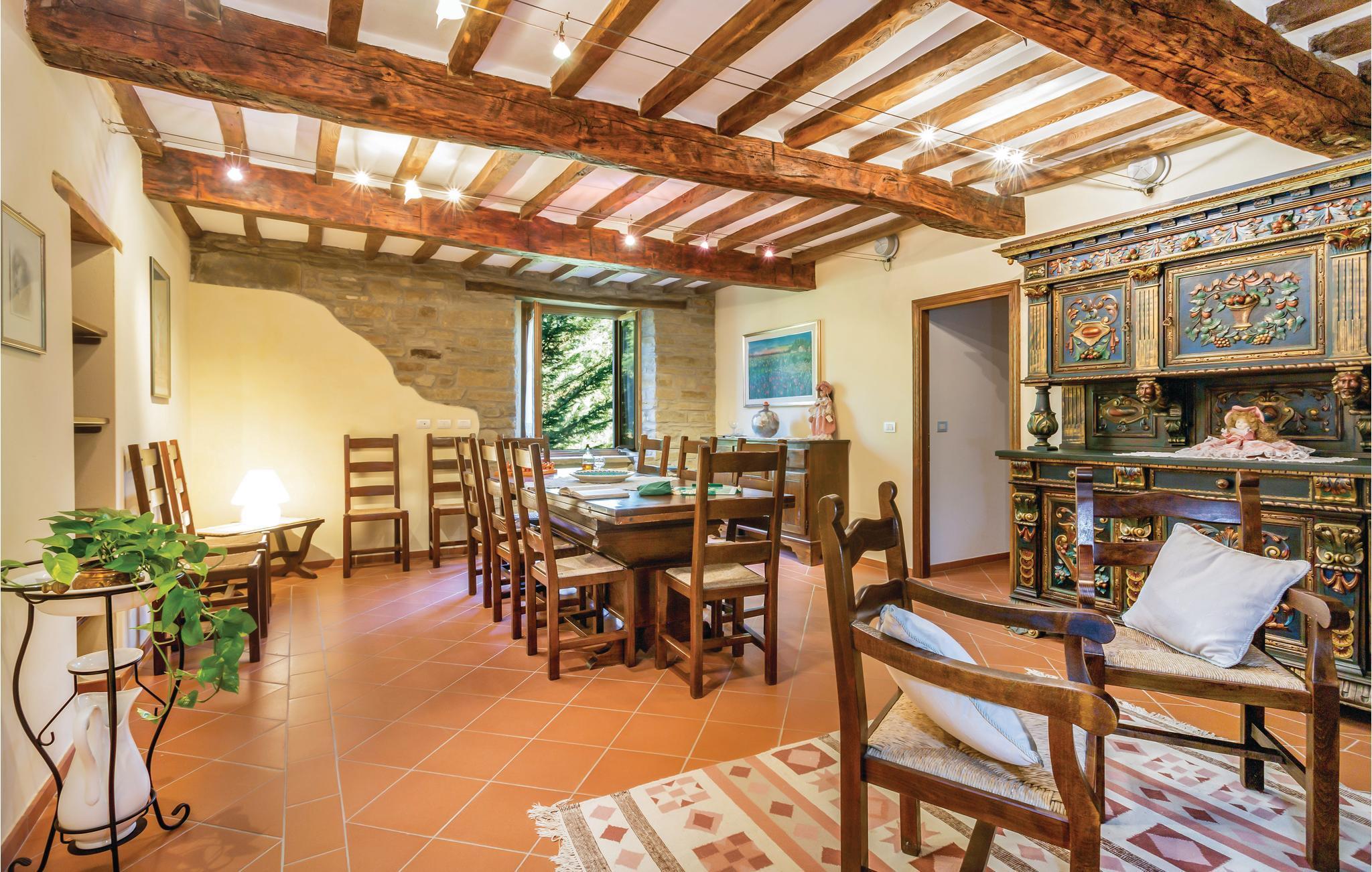 Dieses schöne ehemalige Landhaus wurde zu einem gemütlichen Ferienhaus mit möblierten Garten und einem bohnenförmigen Pool (Größe 12,5 x 7,5 m / Tiefe 0,6 - 1,4 m - beheizt durch Sonnenkollektoren und Whirlpoolbereich) umgebaut und liegt an den grünen Hängen des oberen Mugello Gebiets, in der Nähe der Ortschaft Palazzolo sul Senio (2,5 km). Das Haus ist ziemlich groß und daher ideal für mehrere Familien oder Freundeskreise, die ihren Urlaub zusammen verbringen. Der Bezirk ist besonders geeignet zum Wandern, Rennradfahren oder Mountainbiken. Hier können Sie direkt vom Haus losgehen und die vielen Wege erkunden, die zu stillen und unberührten Naturlandschaften führen. Palazzuolo su Senio gehört zu den "schönsten Dörfern Italiens" und seine historische Atmosphäre und gepflasterten Straßen, sowie die exzellenter Gastronomie werden Sie begeistern. Folgende Spezialitäten sollten auf jeden Fall verkosten : Ricotta- und Kartoffel-Tortelli, Tagliatelle alla Boscaiola, Braten oder Wildspiesse, "Raveggiolo" (Käse) und dann Pilze, Trüffel und die berühmten Mugello IGP-Kastanien! Für einen Ausflug ins schöne Florenz (ca. 60 km) können Sie entweder das Auto nehmen oder mit dem Zug fahren (vom 11 km entfernten Bahnhof vom Marradi -Geschäfte aller Art). NB: Auf dem Grundstück befindet sich ein weiteres Landhaus mit vier Doppelzimmern, wovon zwei mit eigenem Bad und einem Gemeinschaftsbad für zwei weitere Zimmer. Diese Zimmer können zum Zeitpunkt der Buchung angefragt werden, wenn die Anzahl der Gäste die maximal zulässige Kapazität der Ferienhauses überschreitet ( Zahlung vor Ort). In diesem Gebäude befindet sich eine Zweizimmerwohnung die der Hausmeister gelegentlich nutzt, wenn er die Gäste des Hauses empfängt oder Wartungsarbeiten am Grundstück durchführt.