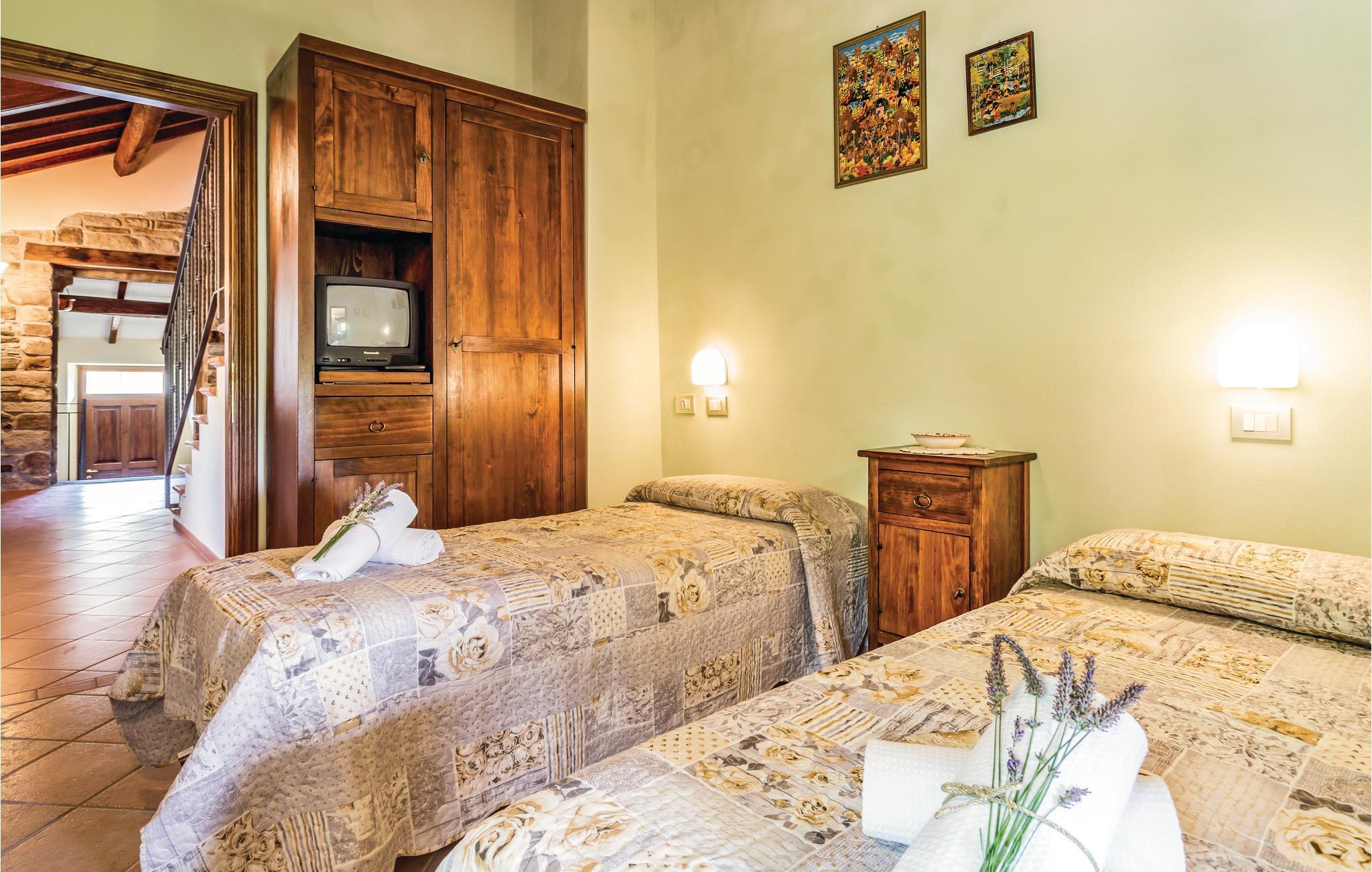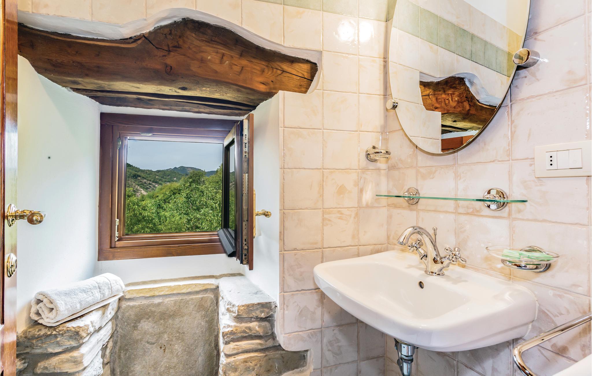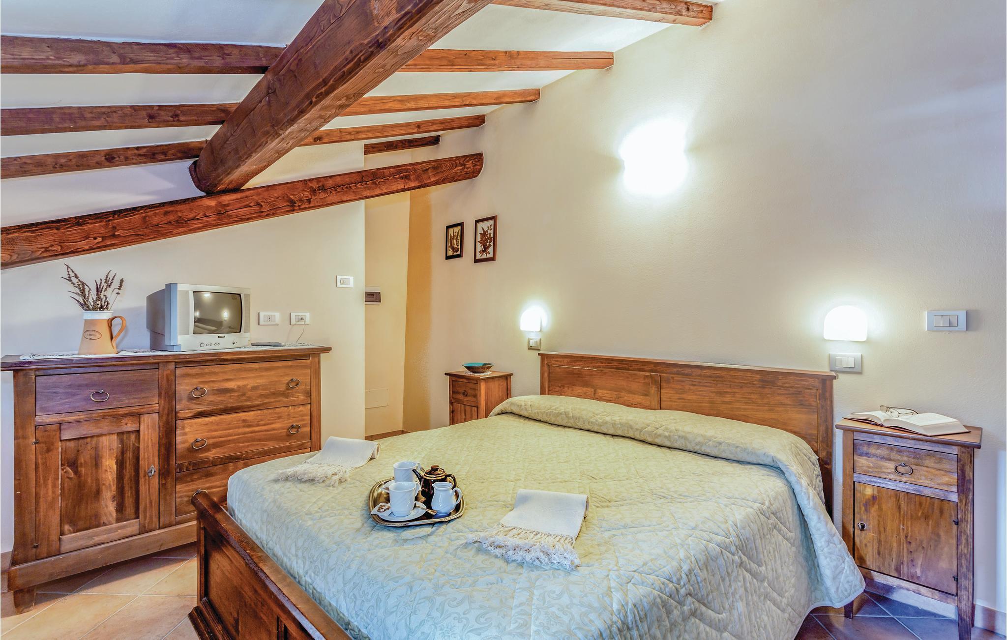 Dieses schöne ehemalige Landhaus wurde zu einem gemütlichen Ferienhaus mit möblierten Garten und einem bohnenförmigen Pool (Größe 12,5 x 7,5 m / Tiefe 0,6 - 1,4 m - beheizt durch Sonnenkollektoren und Whirlpoolbereich) umgebaut und liegt an den grünen Hängen des oberen Mugello Gebiets, in der Nähe der Ortschaft Palazzolo sul Senio (2,5 km). Das Haus ist ziemlich groß und daher ideal für mehrere Familien oder Freundeskreise, die ihren Urlaub zusammen verbringen. Der Bezirk ist besonders geeignet zum Wandern, Rennradfahren oder Mountainbiken. Hier können Sie direkt vom Haus losgehen und die vielen Wege erkunden, die zu stillen und unberührten Naturlandschaften führen. Palazzuolo su Senio gehört zu den "schönsten Dörfern Italiens" und seine historische Atmosphäre und gepflasterten Straßen, sowie die exzellenter Gastronomie werden Sie begeistern. Folgende Spezialitäten sollten auf jeden Fall verkosten : Ricotta- und Kartoffel-Tortelli, Tagliatelle alla Boscaiola, Braten oder Wildspiesse, "Raveggiolo" (Käse) und dann Pilze, Trüffel und die berühmten Mugello IGP-Kastanien! Für einen Ausflug ins schöne Florenz (ca. 60 km) können Sie entweder das Auto nehmen oder mit dem Zug fahren (vom 11 km entfernten Bahnhof vom Marradi -Geschäfte aller Art). NB: Auf dem Grundstück befindet sich ein weiteres Landhaus mit vier Doppelzimmern, wovon zwei mit eigenem Bad und einem Gemeinschaftsbad für zwei weitere Zimmer. Diese Zimmer können zum Zeitpunkt der Buchung angefragt werden, wenn die Anzahl der Gäste die maximal zulässige Kapazität der Ferienhauses überschreitet ( Zahlung vor Ort). In diesem Gebäude befindet sich eine Zweizimmerwohnung die der Hausmeister gelegentlich nutzt, wenn er die Gäste des Hauses empfängt oder Wartungsarbeiten am Grundstück durchführt.