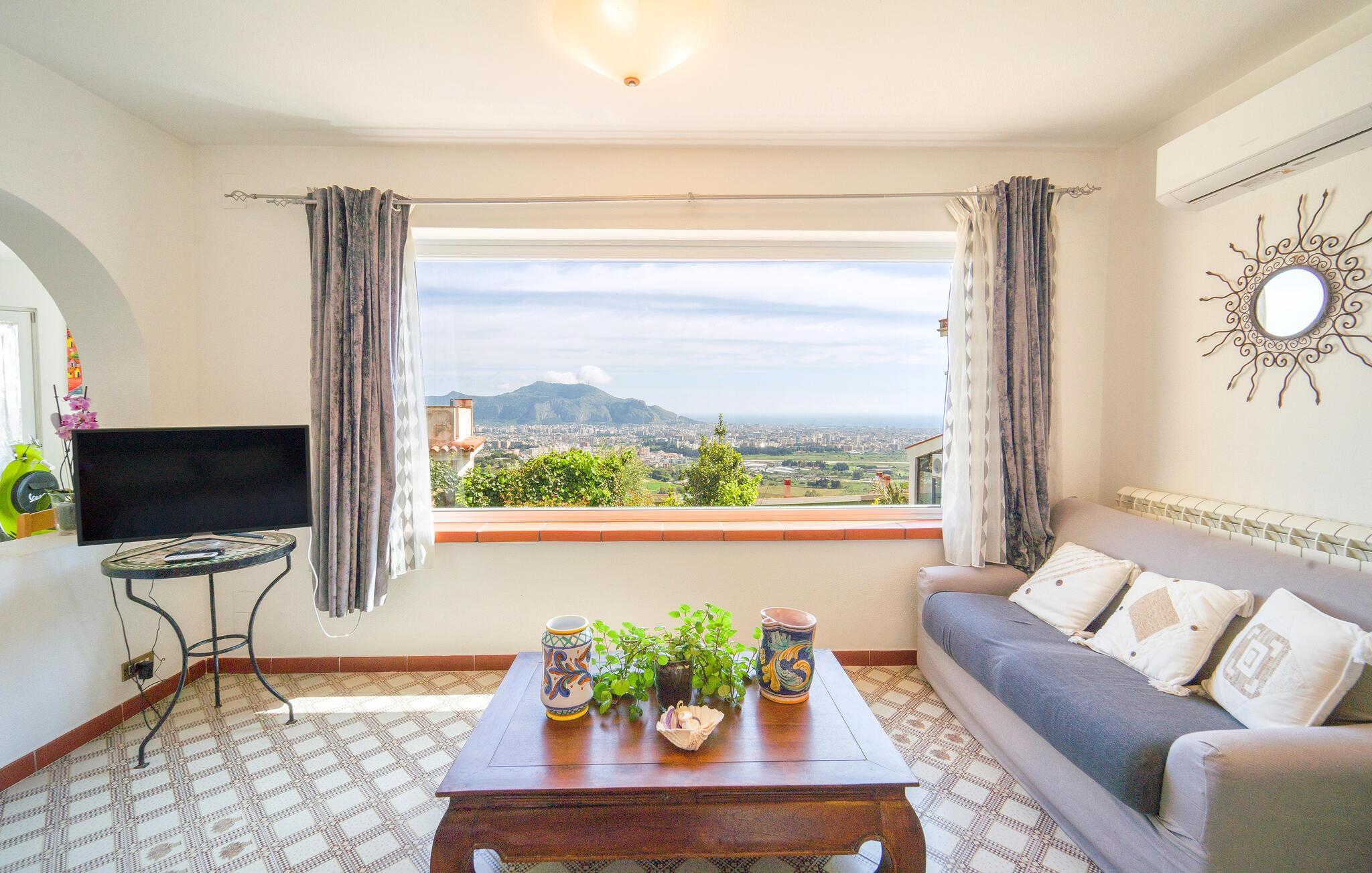 Am Stadtrand von Palermo gelegen, empfängt Sie Ihre Ferienwohnung mit mediterranem Flair und einem wundervollen Blick über die Küste. Lassen Sie sich von der authentischen Atmosphäre des Hauses verzaubern und genießen Sie die entspannte Ruhe. Betreten Sie die stilvolle Wohnung mit ihren liebevoll gestalteten Räumen. Machen Sie es sich im gemütlichen Wohnbereich bequem und genießen Sie die einladende Atmosphäre mit traditionellen Bögen und mediterranen Dekorationen. Der Essbereich mit seinen großen Fenstern lädt zu geselligen Mahlzeiten ein, während die Küche Ihnen die Möglichkeit bietet, leckere Mahlzeiten zuzubereiten.