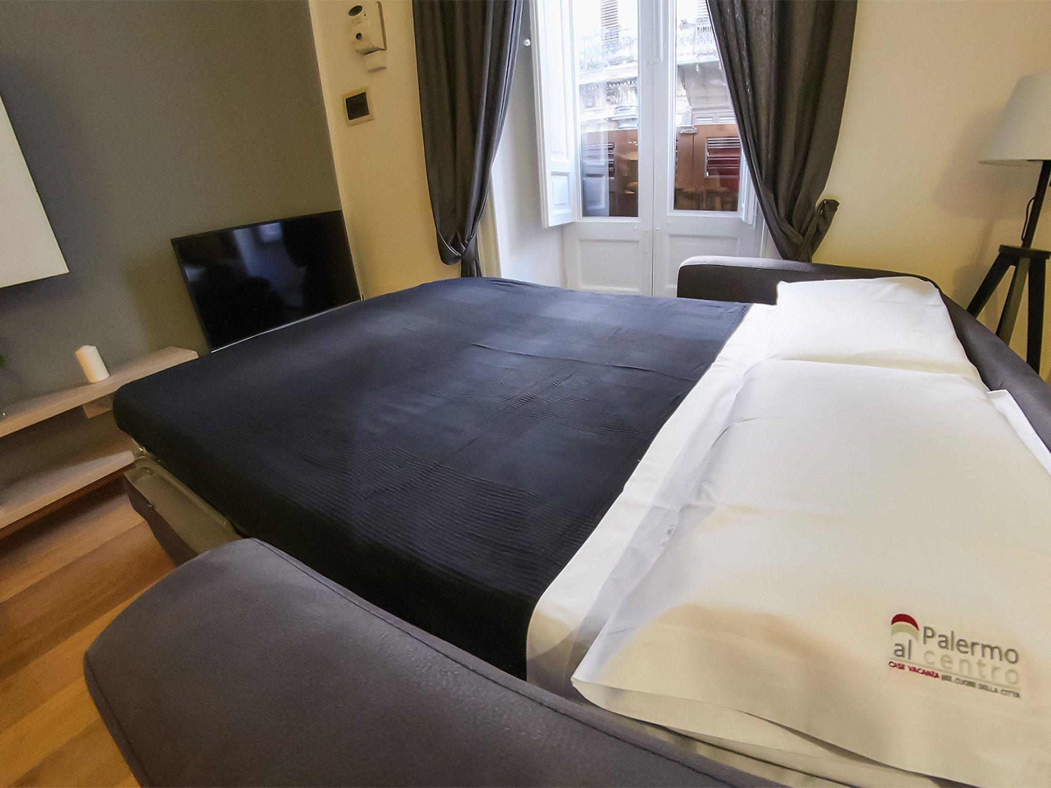 Wohnung Vittorio Die Wohnung Vittorio von Palermo Al Centro befindet sich in einem historischen Gebäude im Zentrum der Stadt, nur einen Steinwurf von den wichtigsten Denkmälern der arabisch-normannischen Straße entfernt, die von der UNESCO zum Weltkulturerbe erklärt wurde. Die Wohnung Vittorio in Palermo Al Centro verbindet Tradition und Moderne und schafft eine entspannende und stimmungsvolle Atmosphäre, die Ihren Aufenthalt unvergesslich machen wird. Unter Beibehaltung der faszinierenden Bezüge zur Historie des Gebäudes, in dem sie untergebracht ist, wurde die Wohnung in einem modernen Stil eingerichtet, mit besonderer Aufmerksamkeit für Details, damit unsere Gäste jeden Komfort genießen können. Reminiszenzen an die Vergangenheit und zeitgenössische Elemente verleihen der Umgebung einen eleganten und exklusiven Stil. Die günstige Lage der Wohnung Vittorio ermöglicht es Ihnen, die wichtigsten Sehenswürdigkeiten der Stadt leicht zu erreichen. Die Wohnung verfügt über ein eigenes Bad mit allem Komfort für Ihre Entspannung, eine Küche mit allem, was Sie brauchen, um Ihren Aufenthalt bequem zu machen und ein helles und gemütliches Schlafzimmer.