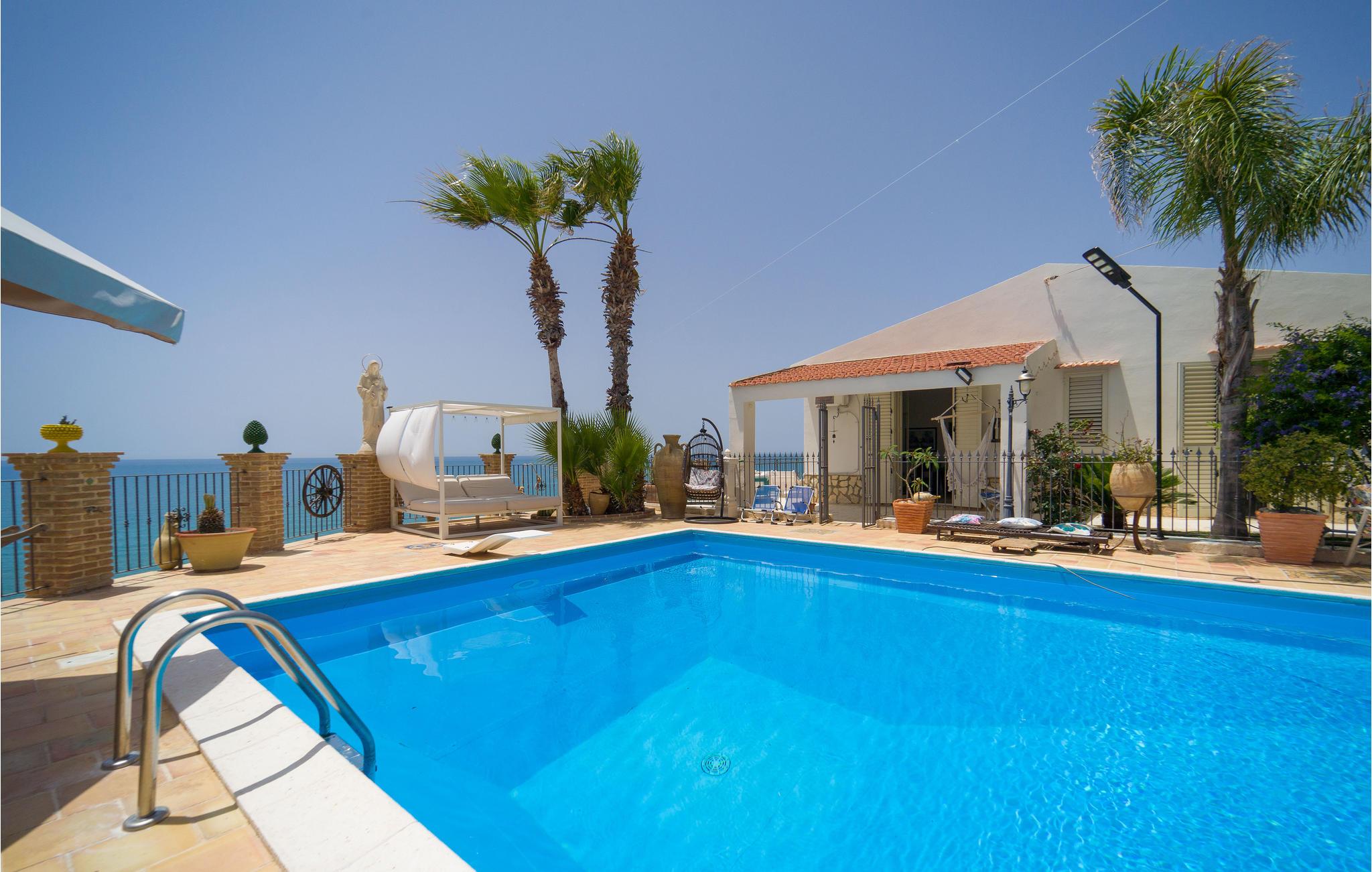 Genießen Sie einen traumhaften Urlaub in der Ferienwohnung mit Zugang zum Pool und einem herrlichen Blick auf das Meer.