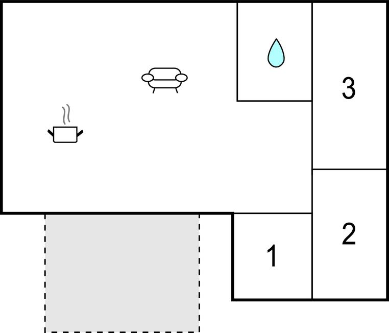 Wohnraum/Küche - 1 Schlafmöglichkeit. (Einzelbett(en)).