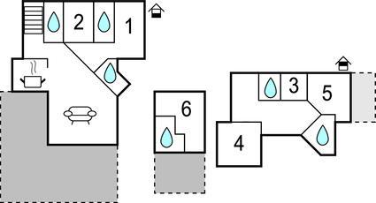 Badezimmer (nr. 5) - WC. Warmes und kaltes Wasser. Dusche