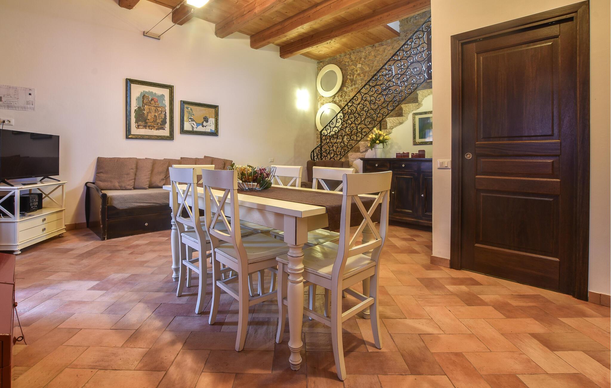 Wenn Sie von Urlaub in historischen Gemäuern träumen, sollten Sie sich dieses Ferienhaus näher ansehen. Es ist der ideale Ort für einen Familienurlaub, da sich hier auch die Kleinsten wohlfühlen. Machen Sie es sich in den einladenden Räumen gemütlich, die mit alten Holzdecken und sichtbarem Mauerwerk vom Charme vergangener Zeiten geprägt sind. Beginnen Sie den Tag mit einer Tasse Kaffee in der gemütlichen Wohnküche und freuen Sie sich hier auf schöne Abende, wo Sie nach einem erlebnisreichen Tag lange plaudern können.