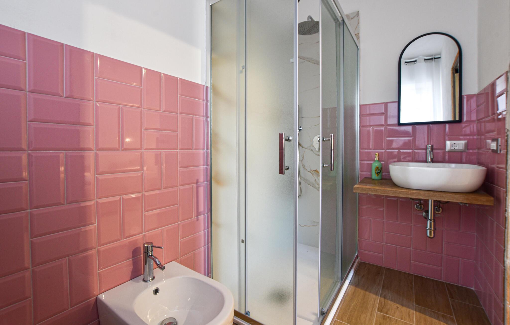 Badezimmer 4m2 (nr. 2) - WC. Warmes und kaltes Wasser. Dusche