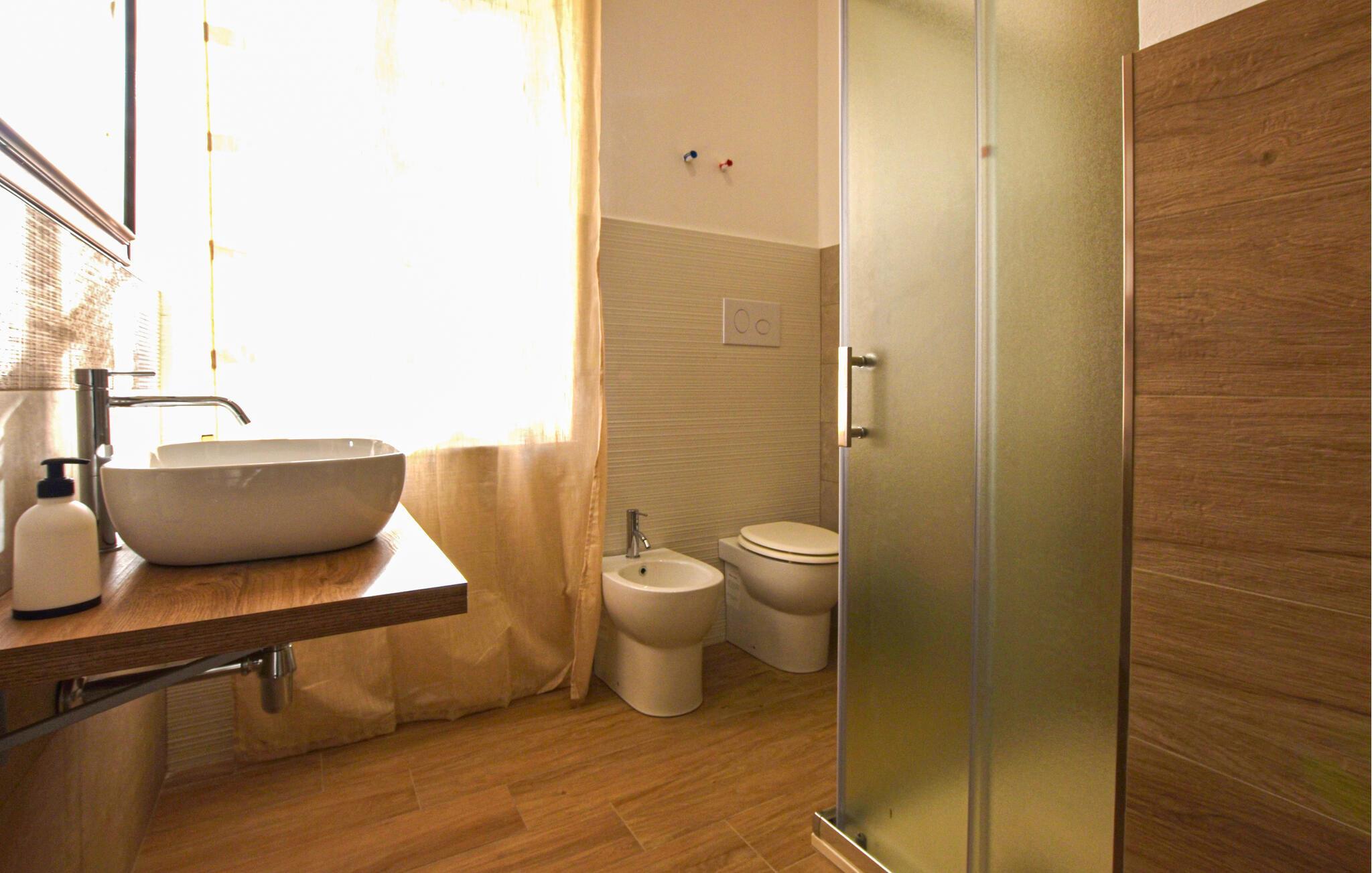Badezimmer 5m2 (nr. 1) - WC. Warmes und kaltes Wasser. Dusche