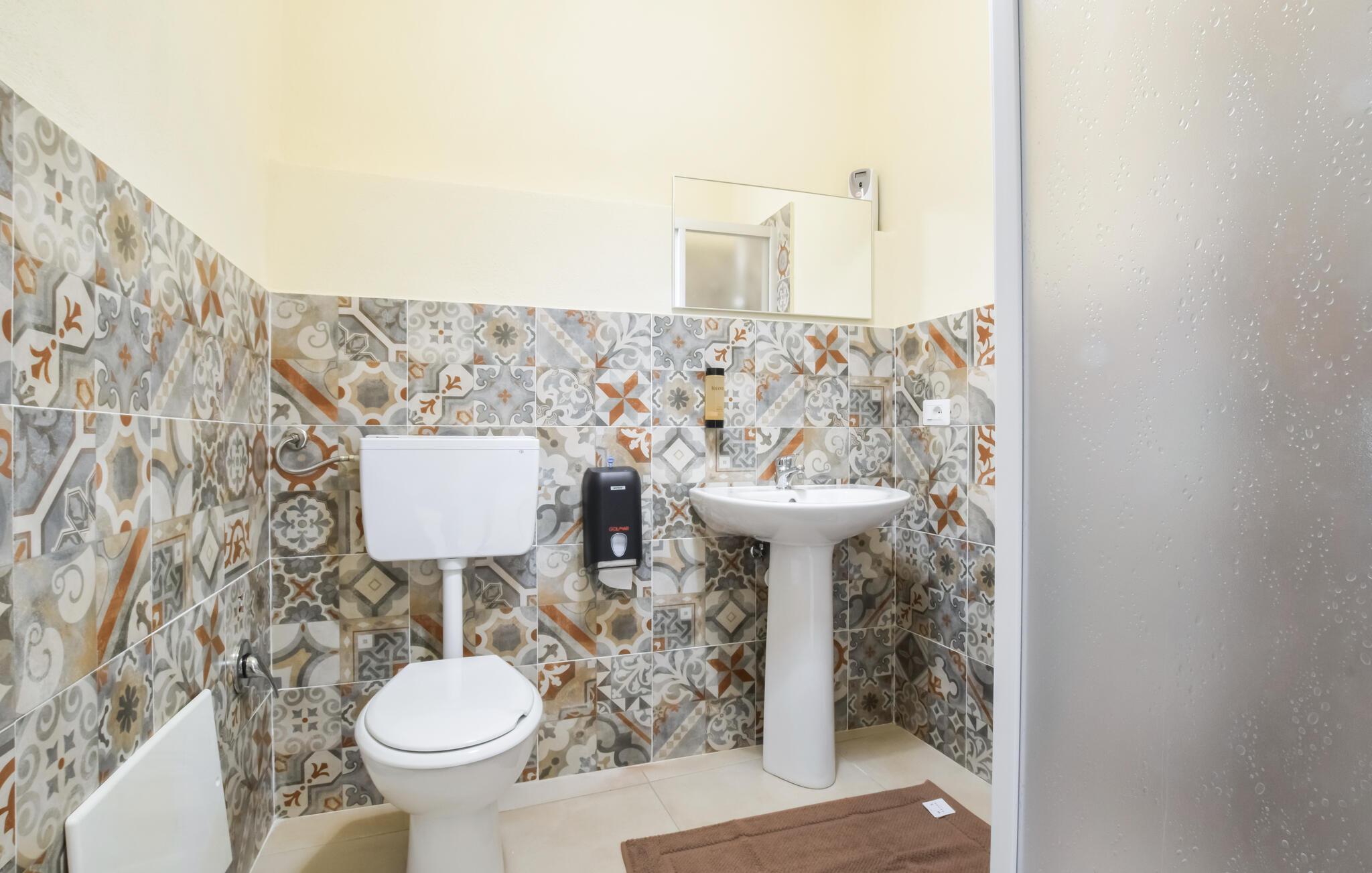 Badezimmer 4m2 (nr. 1) - WC. Warmes und kaltes Wasser. Dusche