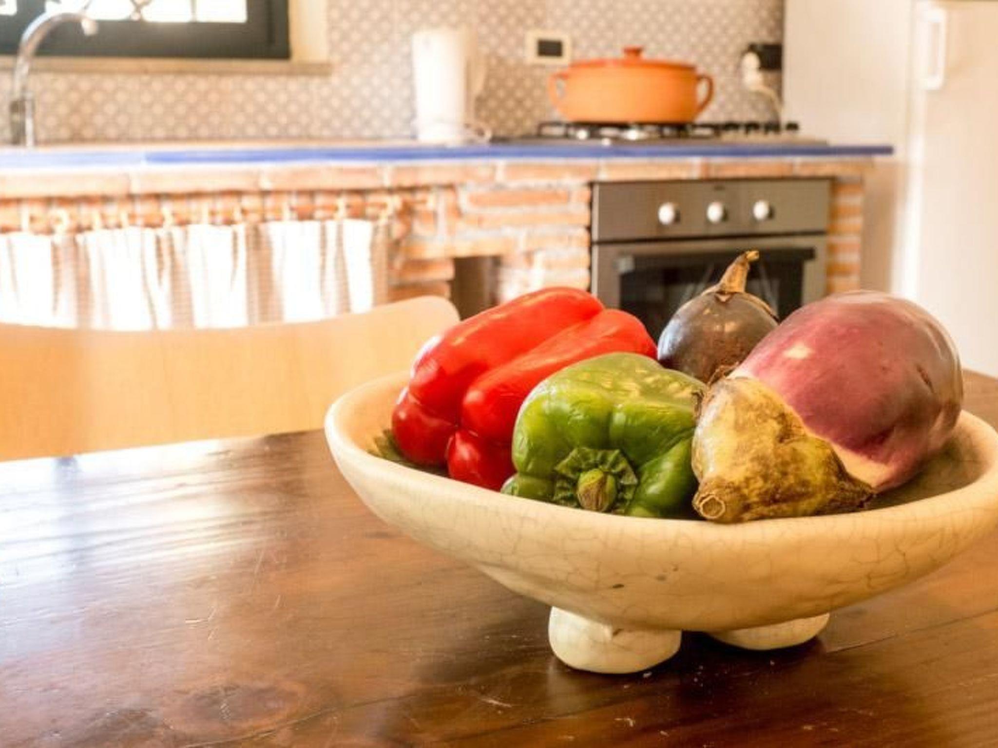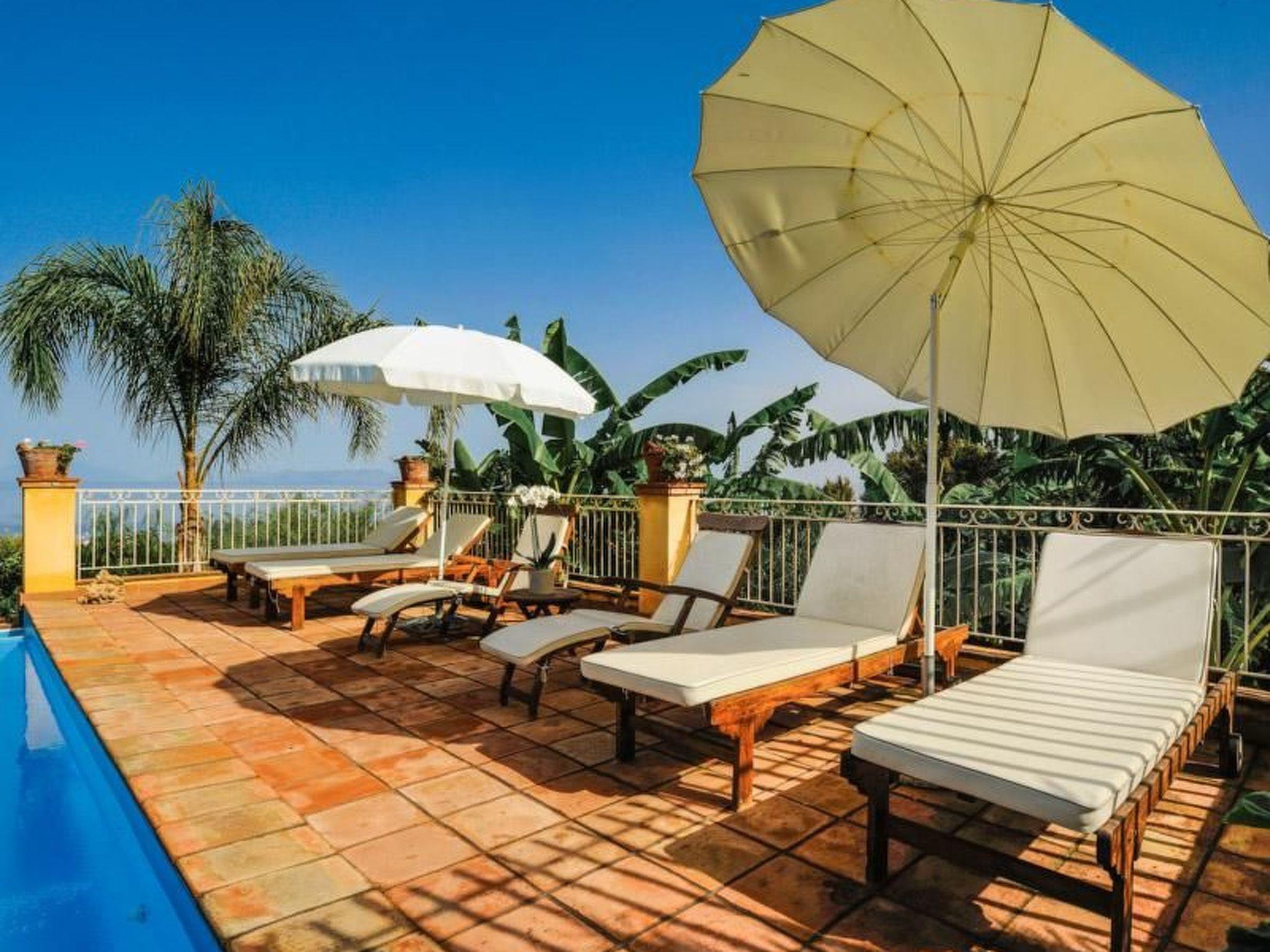 Die Familie des Eigentümers bewohnt die andere Hälfte des Hauses. Der Swimmingpool wird somit gemeinsam genutzt. Die Ferienwohnung verfügt jedoch über einen eigenen Eingang und einen privaten Gartenanteil. Privatsphäre ist somit ausreichend garantiert. Der Pool bietet eine noch schönere Aussicht auf die Landschaft als die Wohnung und das Meer scheint von hier aus zum Greifen nah.