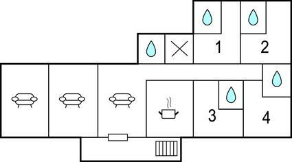 Badezimmer (nr. 4) - WC. Warmes und kaltes Wasser. Dusche