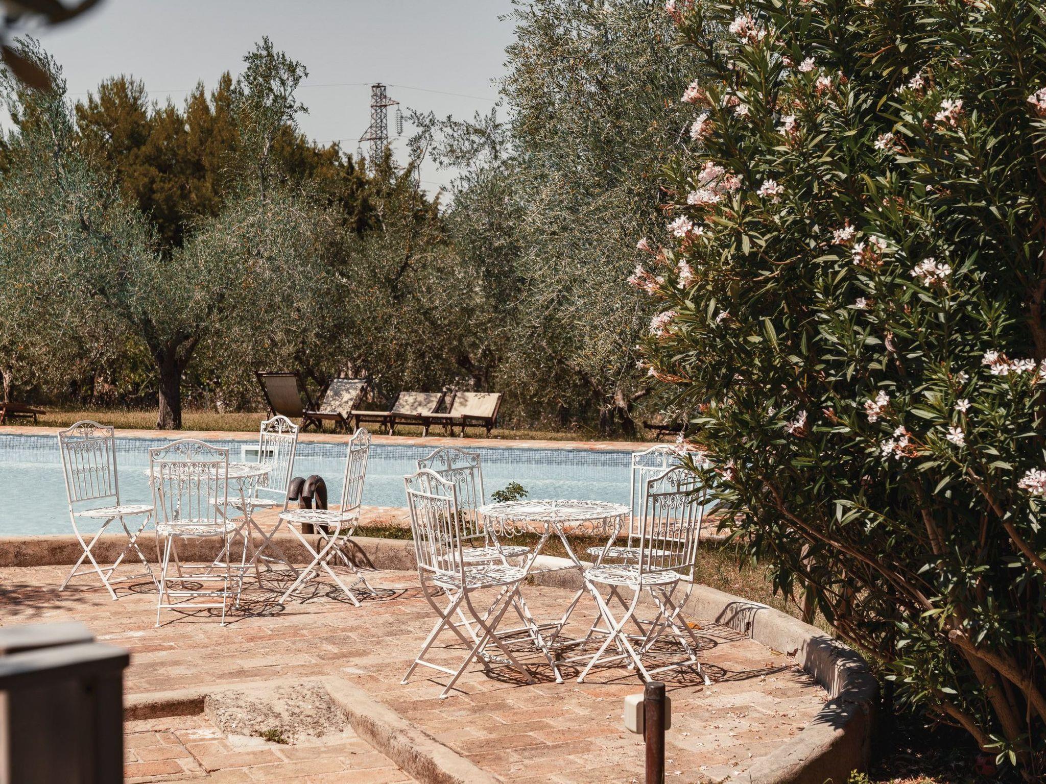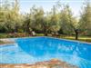 Sommerschwimmbad für die Gäste in einem jahrhundertealten Olivenhain mit Liegestühlen und Sonnenbetten.