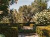 Blick auf den Innengarten, den Olivenhain und die Privatkirche auf dem Grundstück.