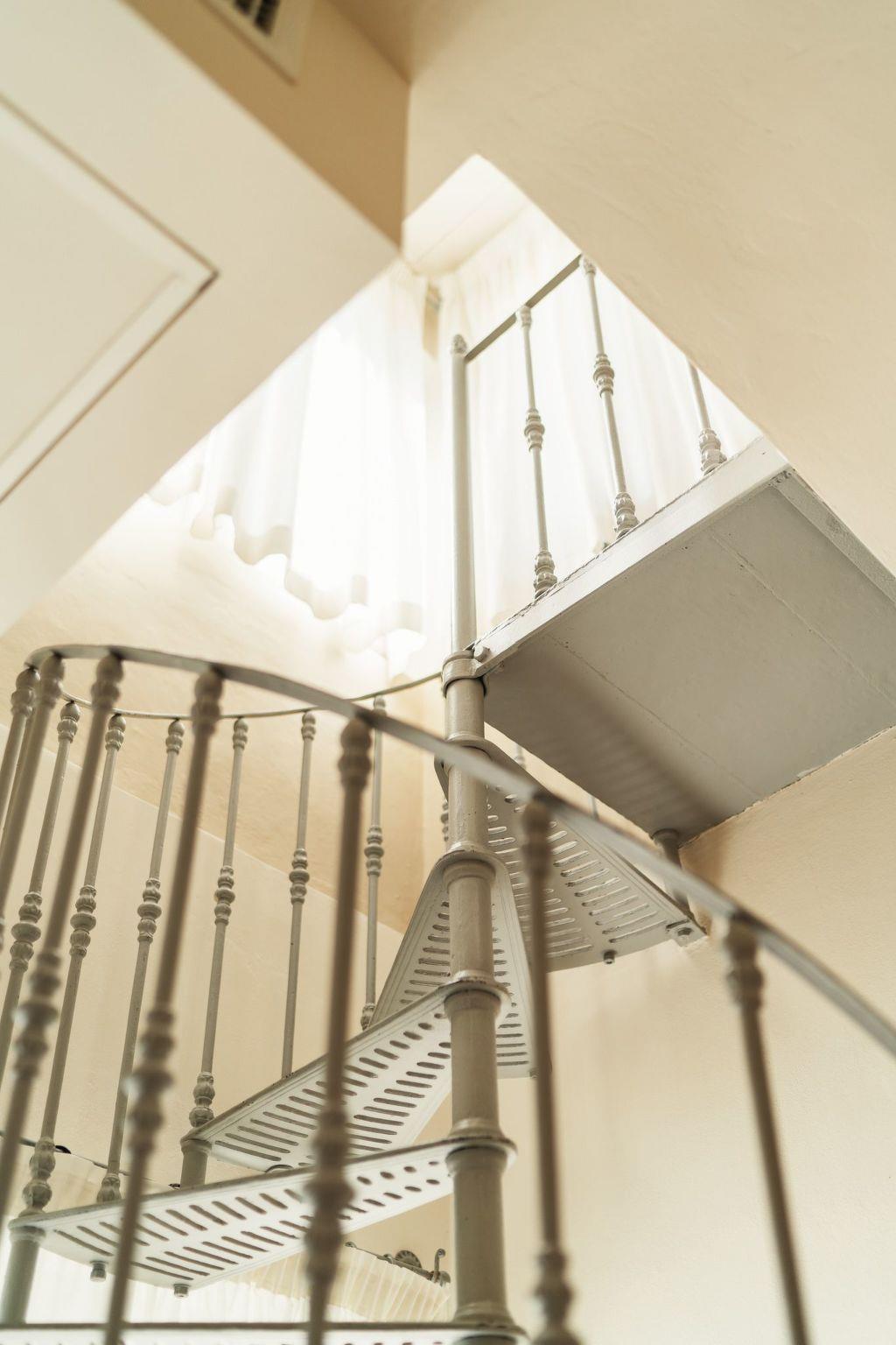 Die Unterkunft mit einer Fläche von ca. 37 m² erstreckt sich über vier Etagen, die durch eine charakteristische gusseiserne Wendeltreppe verbunden sind, die bis zum Dach des Turms führt: ein einzigartiges Detail, das das Erlebnis wirklich besonders macht.