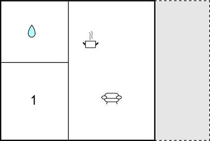 Badezimmer (nr. 1) - WC. Warmes und kaltes Wasser. Dusche