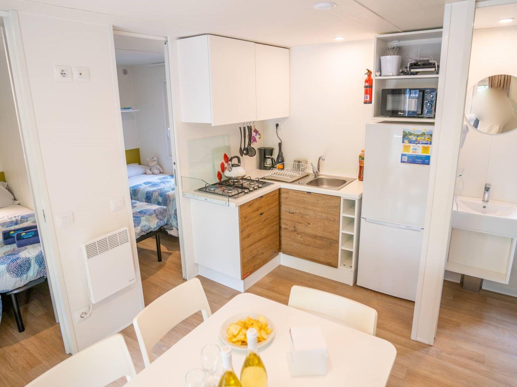 "Happy Superior", 4-Zimmer-Mobilheim 32 m2. Komfortabel eingerichtet: Wohn-/Esszimmer mit E-Heizung und Klimaanlage. 1 Zimmer mit 1 franz. Bett (140 cm, Länge 190 cm), Dusche/WC. 2 Zimmer, jedes Zimmer mit 2 Betten (70 cm, Länge 190 cm). Offene Küche (4 Kochplatten, Toaster, Mikrowelle, elektrische Kaffeemaschine). Dusche/WC. Klimaanlage (extra). Terrasse überdacht. Terrassenmöbel, Elektrogrill (mobil), Liegestühle (2). Zur Verfügung: Fliegengitter, Haartrockner. Parkplatz (1 Auto) beim Haus. Bitte beachten: Nichtraucher-Unterkunft. IT023059B1D3TAW9IS