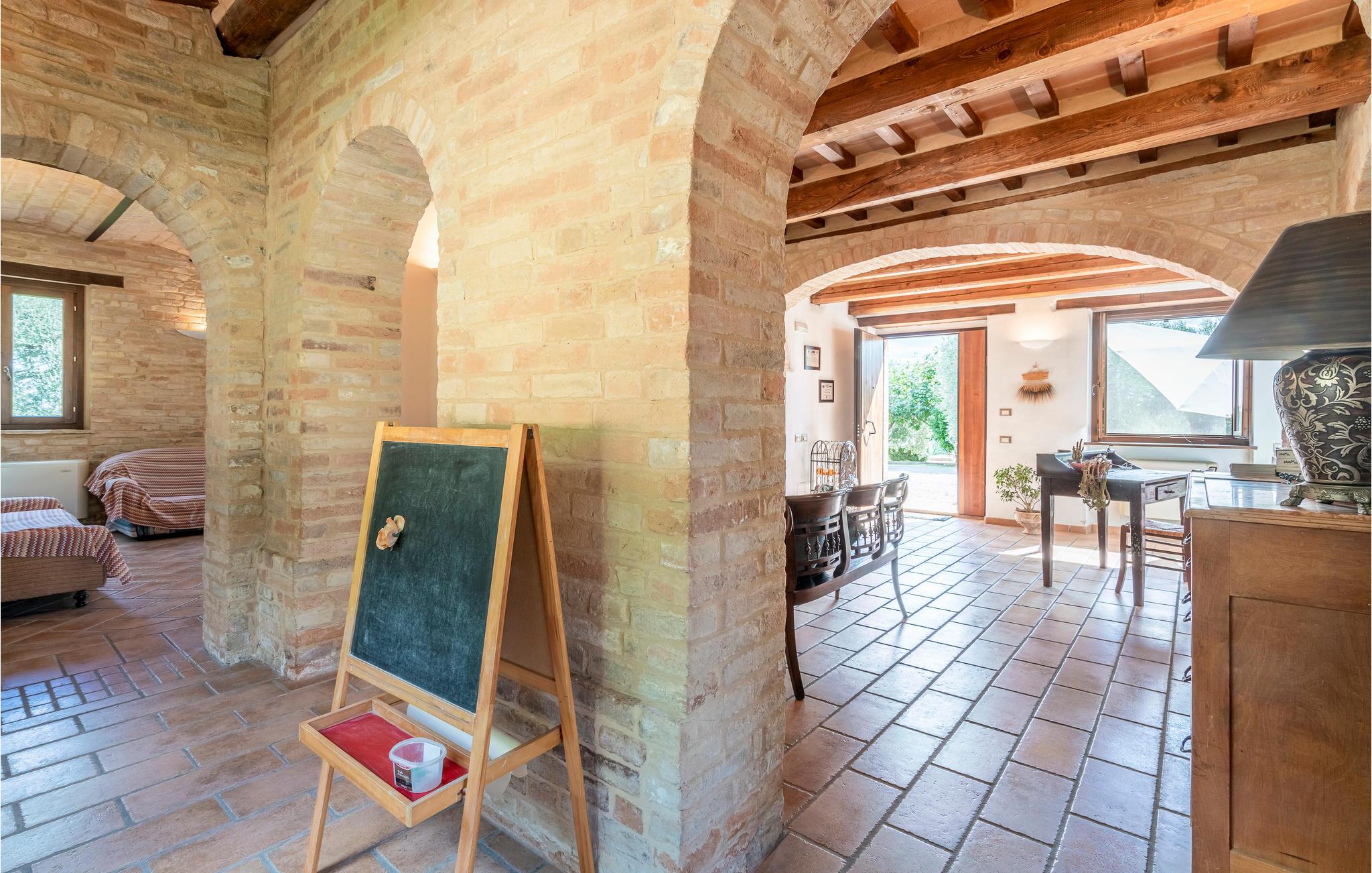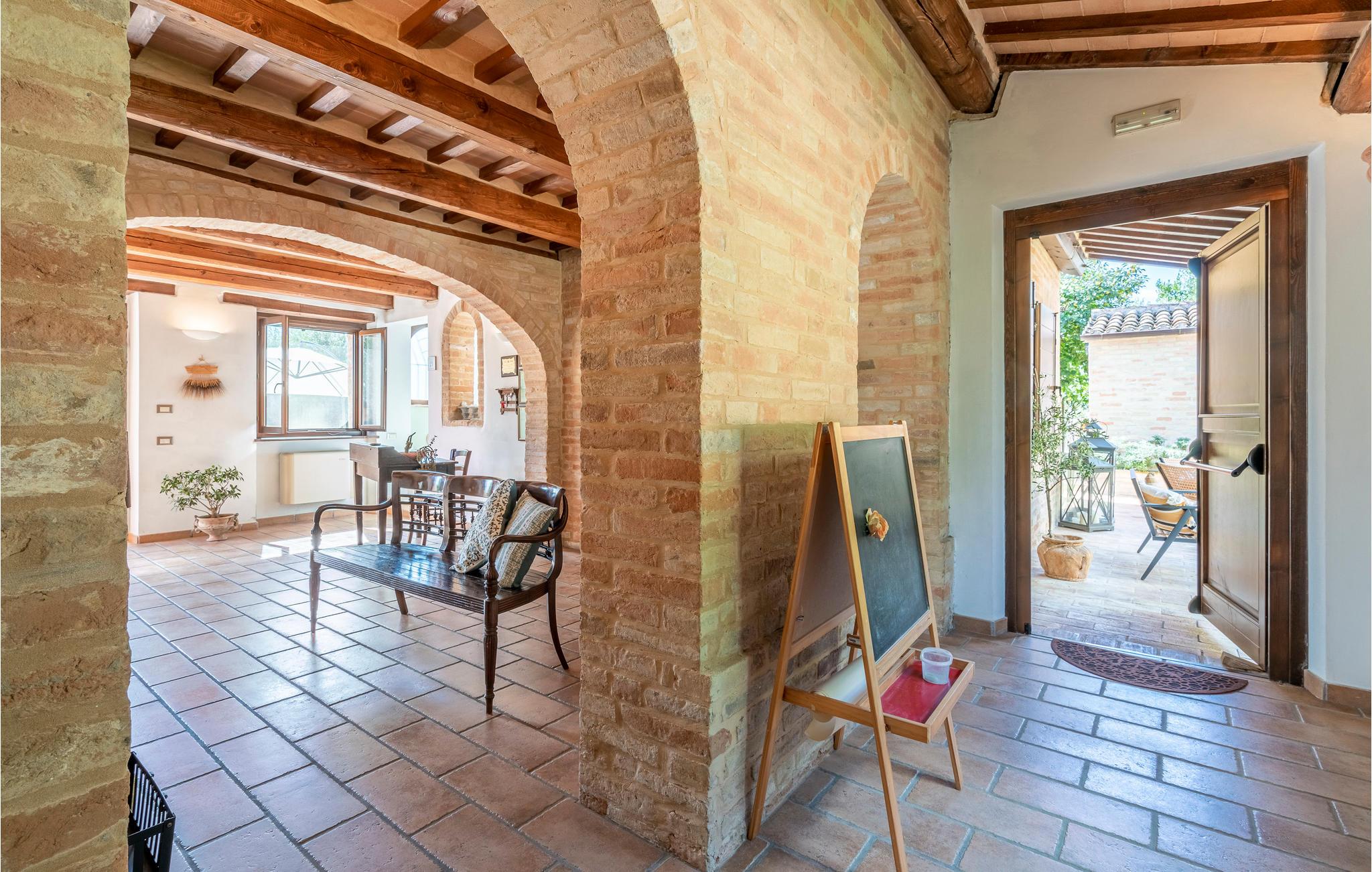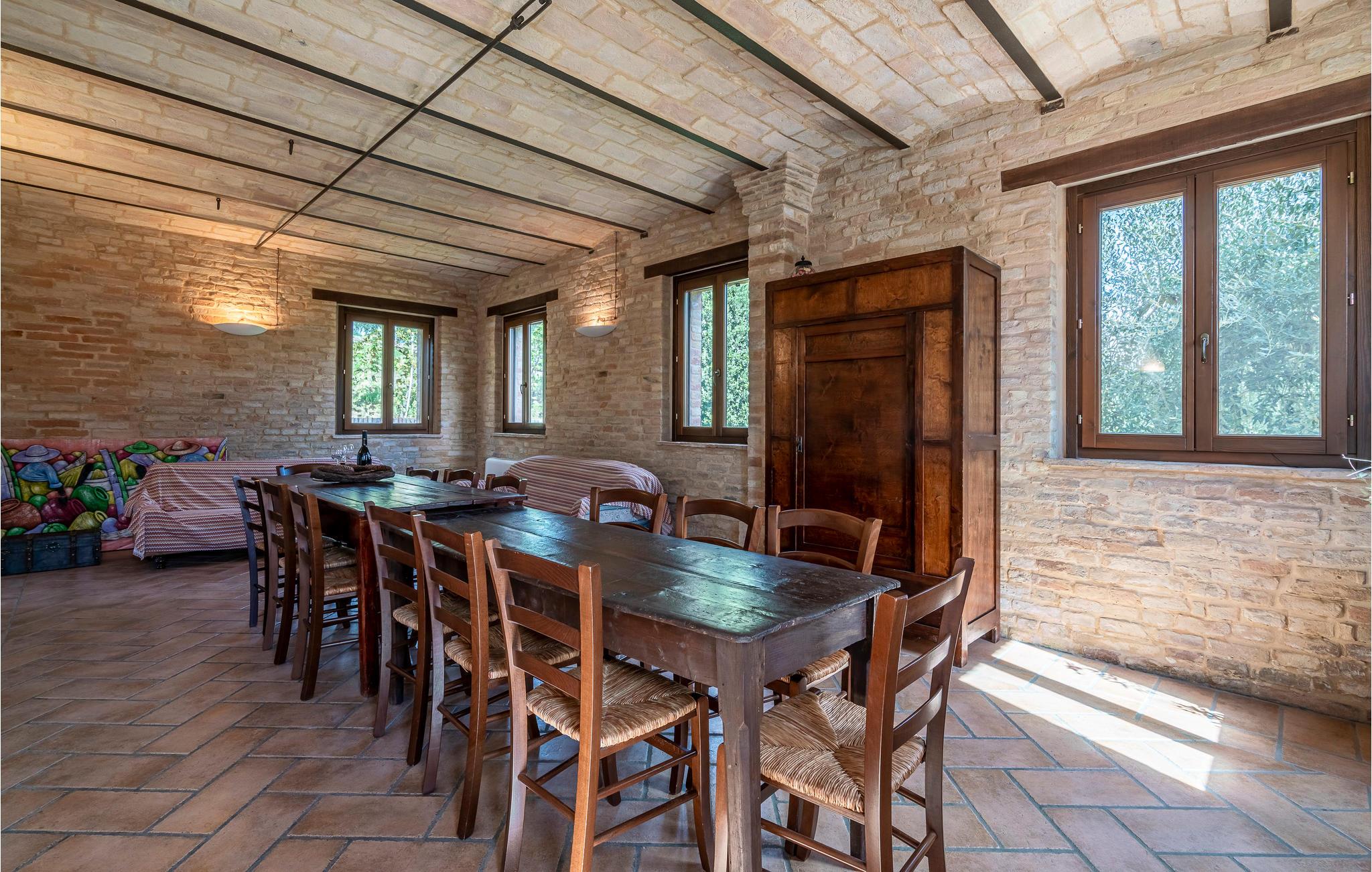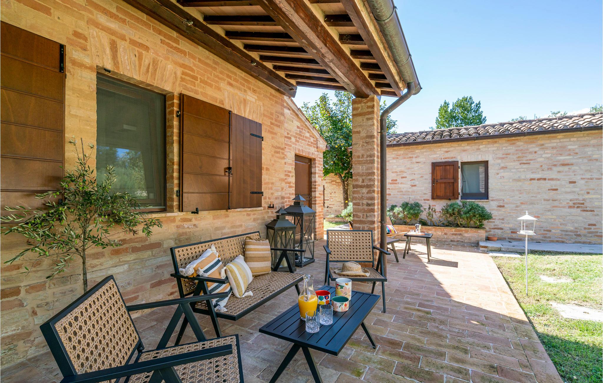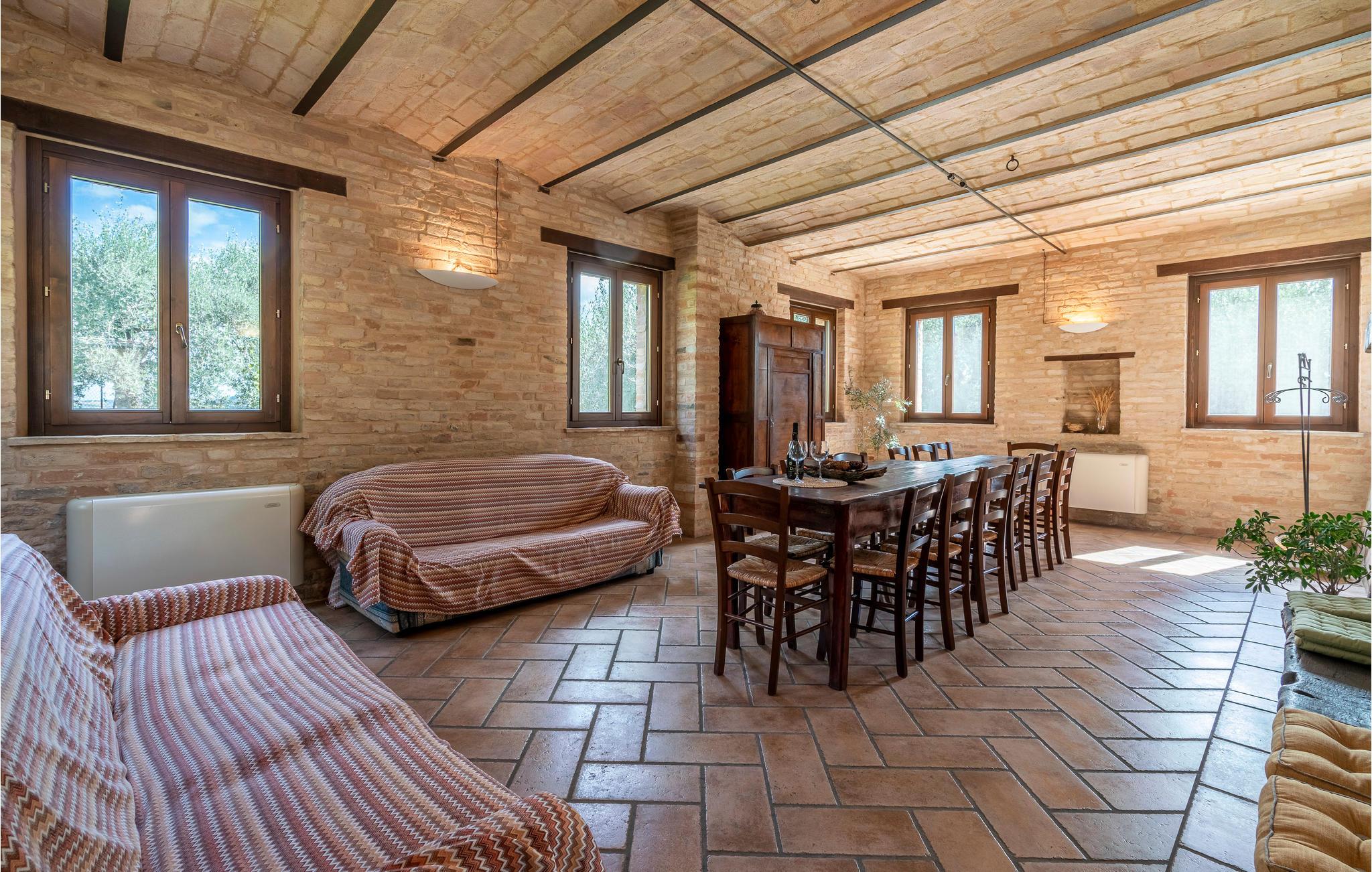 Dieses liebevoll restaurierte Bauernhaus in der Nähe von Petriolo bietet Ihnen den idealen Rückzugsort für einen unvergesslichen Urlaub. Tauchen Sie ein in die Kultur, Tradition und Naturschönheiten der Marken und genießen Sie die herzliche Gastfreundschaft. Die Räume sind im traditionellen Stil mit modernem Komfort eingerichtet. Der großzügige Essbereich mit seinem charmanten Kaminofen und die gemütliche Küche bieten ideale Voraussetzungen für gesellige Abende. Zusätzlich steht ein separates Nebengebäude zur Verfügung, ideal für größere Gruppen oder Familien.